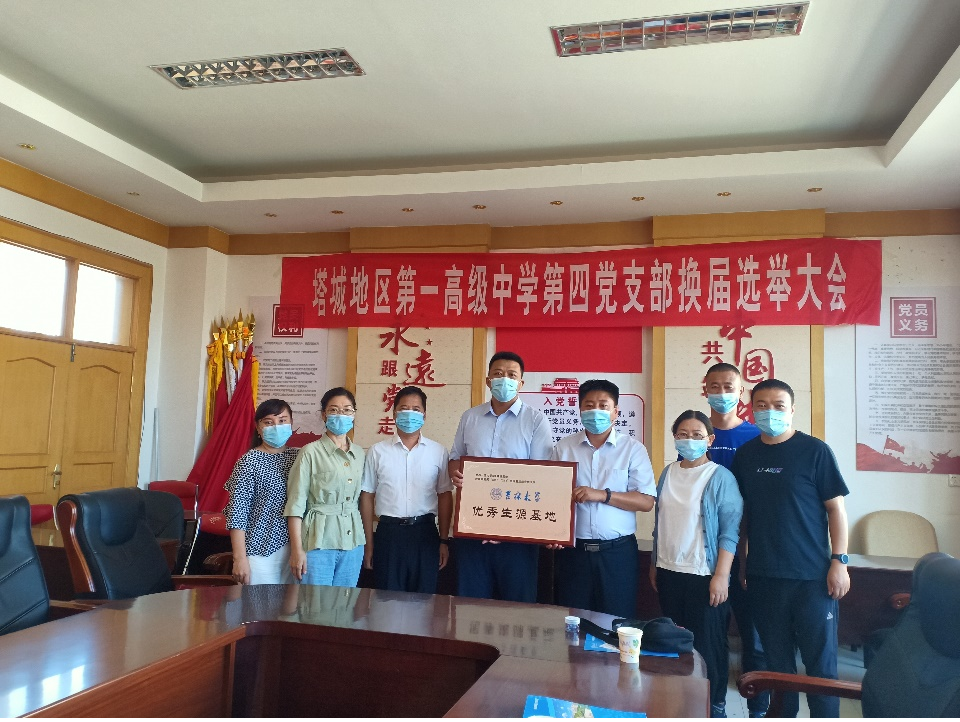 8月1日上午,地球科学公司党委副书记李阳前往新疆塔城地区第一高级中学,举行伟德体育伟德体育官方网站优秀生源基地授牌仪式。塔地一高党委书记张旭光、高三年级组、人事处、教研处、德育处相关老师出席了此次仪式。
