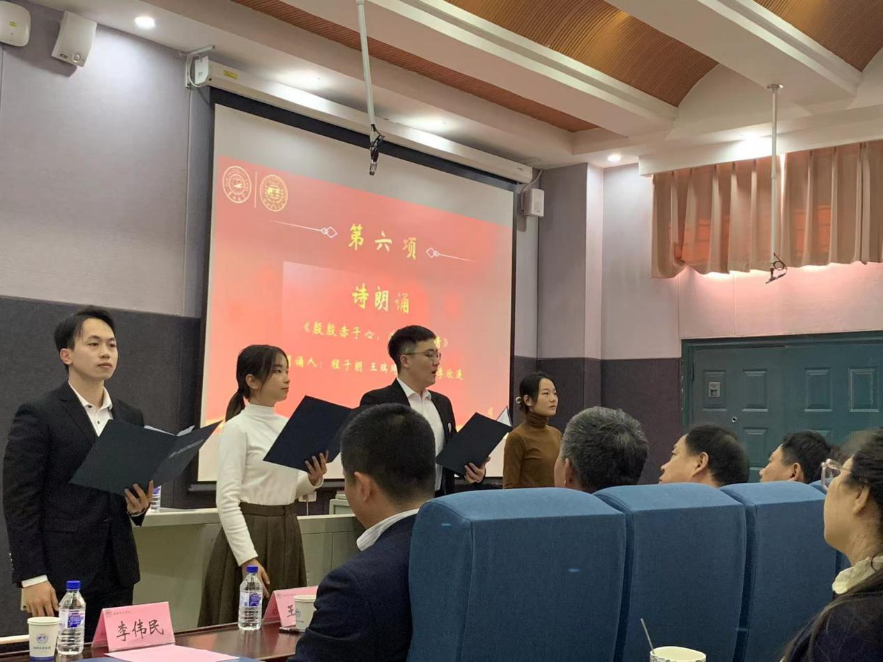 随后,土地资源管理专业2020级程子朗、赵博轩,2021级王瑞琦、李欣遥4位同学为在场师生带来了深情饱满的诗朗诵《殷殷赤子心,浓浓地质情》。抒发了同学们对地质行业的深深热爱之情,道出了同学们对公司、公司辛勤培育员工成长成才的深深感激之情。