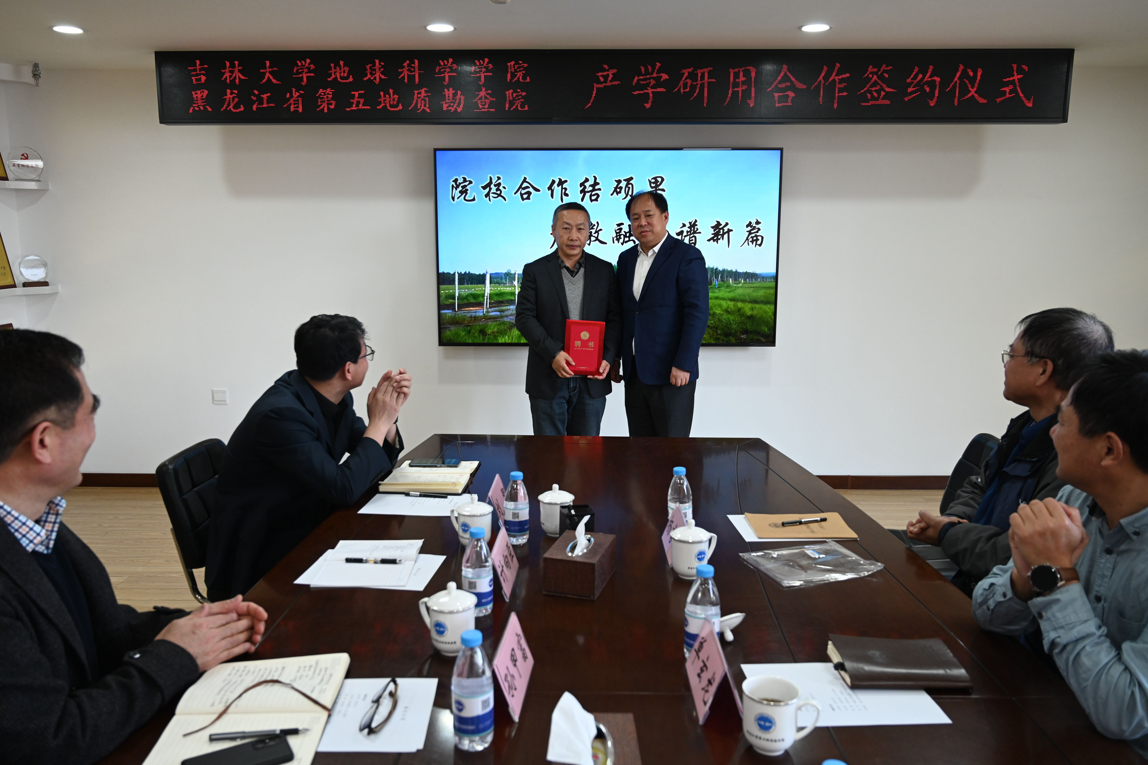 为促进校企间产学研合作,提升地质人才培养质量,加速科研成果转化,10月28日,伟德体育伟德体育官方网站与黑龙江省第五地质勘查院举行了产学研用合作签约暨基地揭牌仪式,仪式在黑龙江省第五地质勘查院办公楼举行。公司经理单玄龙、党委书记杨洲、资源工程系主任杨言辰,黑龙江省第五地质勘查公司党委书记孙甲富、总工程师计向臣、副经理雷敏及相关工作人员等8人参加了签约仪式。