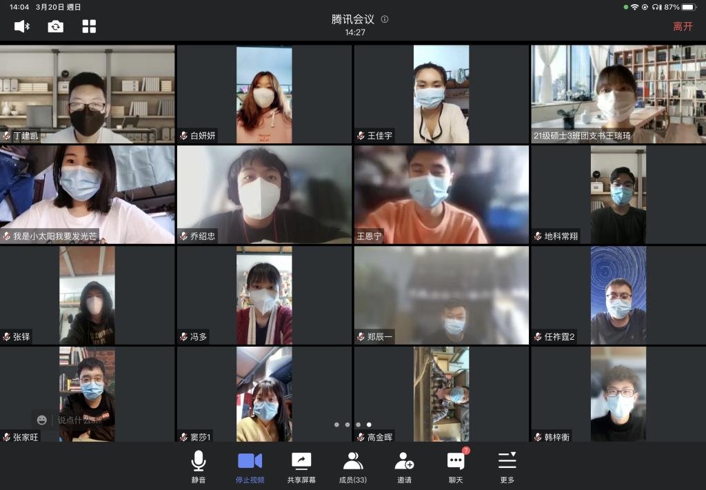研究生干部心理健康教育主题线上会议结束后,各年级的班级干部积极响应公司号召,在当日晚分别召集各班级同学们进行“疫情期间的心灵沟通”、“线上见面会”等主题班会。班会上,同学们为这特殊时期的“久别重逢”而感动,大家相互分享了自己的日常生活,讨论了这段时间在学术上遇到的困难和收获的心得,也交流了许多情绪上的困惑,大家相互加油鼓劲,相互加油,彼此约定在疫情结束的那天再次见面,相信我们一定会战胜疫情。