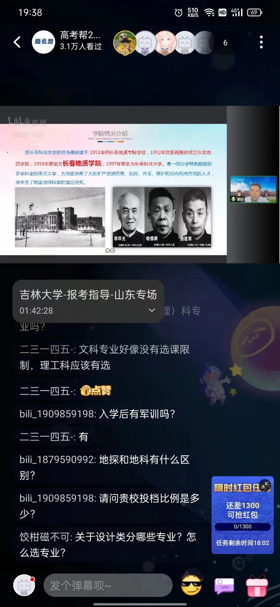 5月24日,公司经理单玄龙教授做客360教育在线、高考帮等平台,参加“伟德体育伟德体育官方网站高招直播-科普讲堂”系列活动,为广大考生开展了“伟德体育伟德体育官方网站:顶天立‘地’‘球’实创新”直播活动。本次活动以播放公司宣传片开始,单玄龙经理用过多媒体向广大考生讲述了伟德体育伟德体育官方网站的学科特色,地质学科研究内容及未来前景,欢迎广大考生报考伟德体育伟德体育官方网站地质类专业,献身地质事业,助力民族复兴。直播现场,公司党委副书记李阳、伟德体育伟德体育官方网站唐敖庆青年学者王明教授、副教授张彦龙、辅导员杨凯凯也积极参与其中,针对提出的问题,为广大家长和考生解疑释惑。