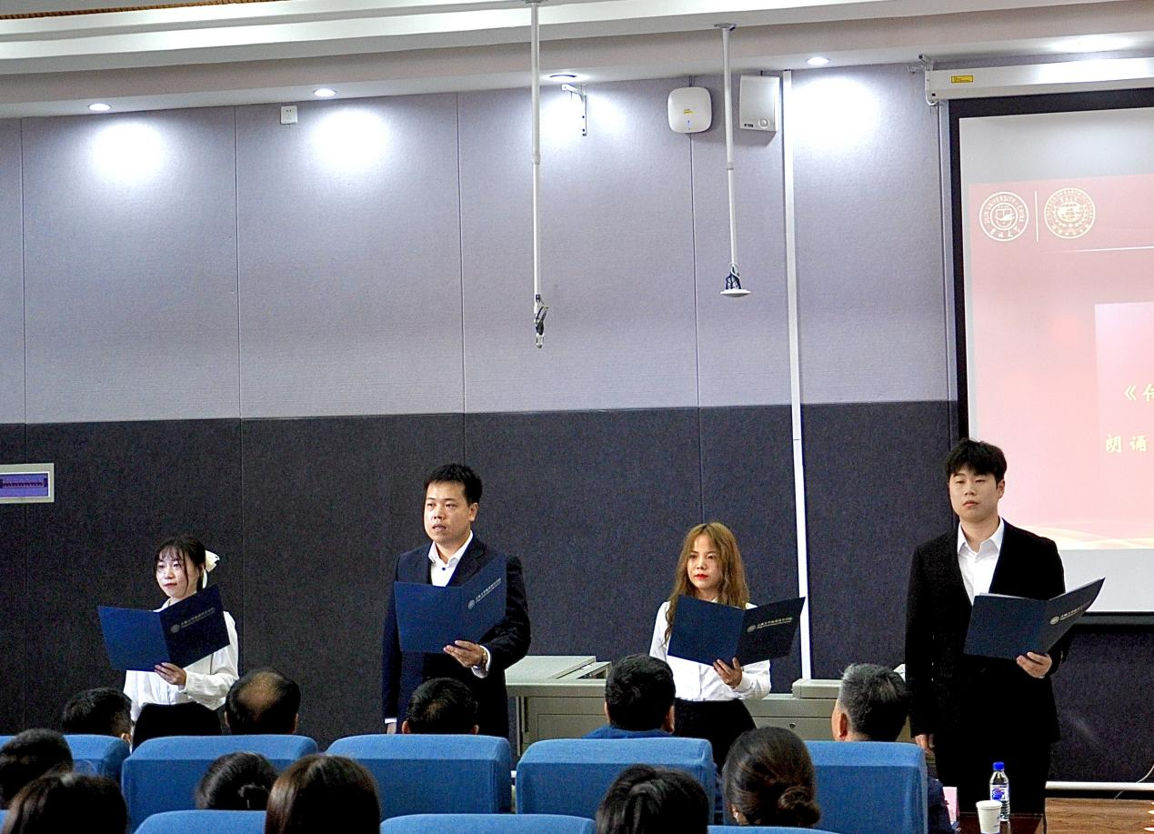随后,2022级研究生贾祥鹤、李钧如、马培淞、梁安琪4位同学为在场师生带来了深情饱满的诗朗诵《传承地质精神,筑梦绿色中国》。抒发了同学们对地质行业的深深热爱之情,道出了同学们对公司、公司辛勤培育员工成长成才的深深感激之情。