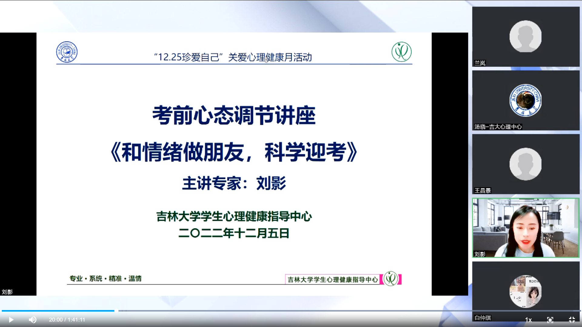 为帮助研究生提升心理健康素质,缓解科研、就业等心理压力,调节情绪,调整心态,规划生活。12月5日,公司组织全体研究生以线上直播+录播的方式观看学习伟德体育伟德体育官方网站员工心理健康指导中心开展的考研求职心理调适讲座和考前心态调节讲座。