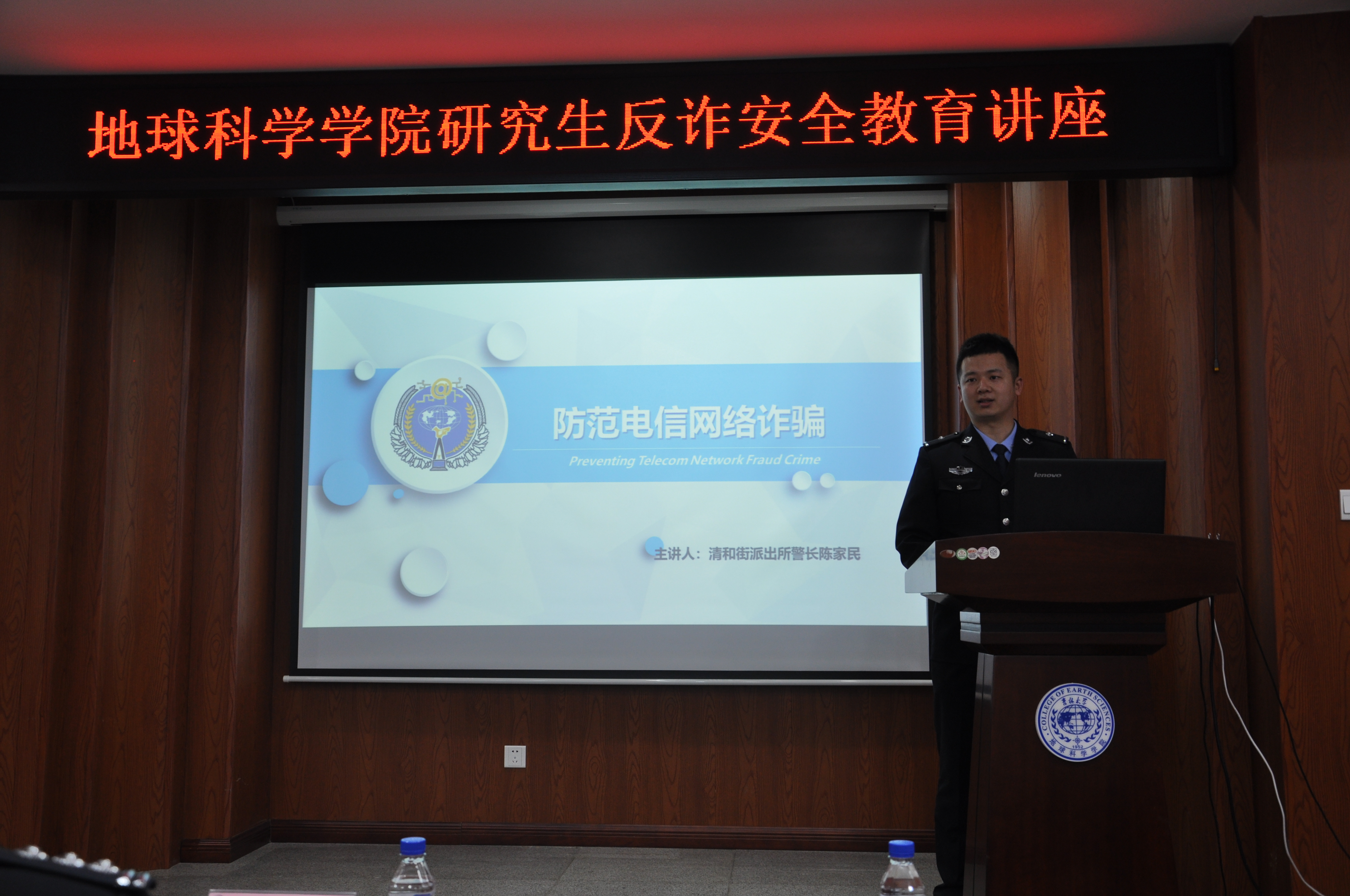 为有效防范电信网络诈骗,增强研究生群体对电信网络诈骗的识别及应对能力,切实保障人身财产安全。4月3日晚6点,公司邀请清河街派出所民警陈家民在鸽子楼一楼报告厅为同学们带来了以“防范电信网络诈骗”为主题的安全教育讲座。清河街派出所民警陈东明、朝阳保卫办治安科科长曾光、校园110班长宋伟出席本次活动。活动由公司研究生辅导员姜鹏主持。