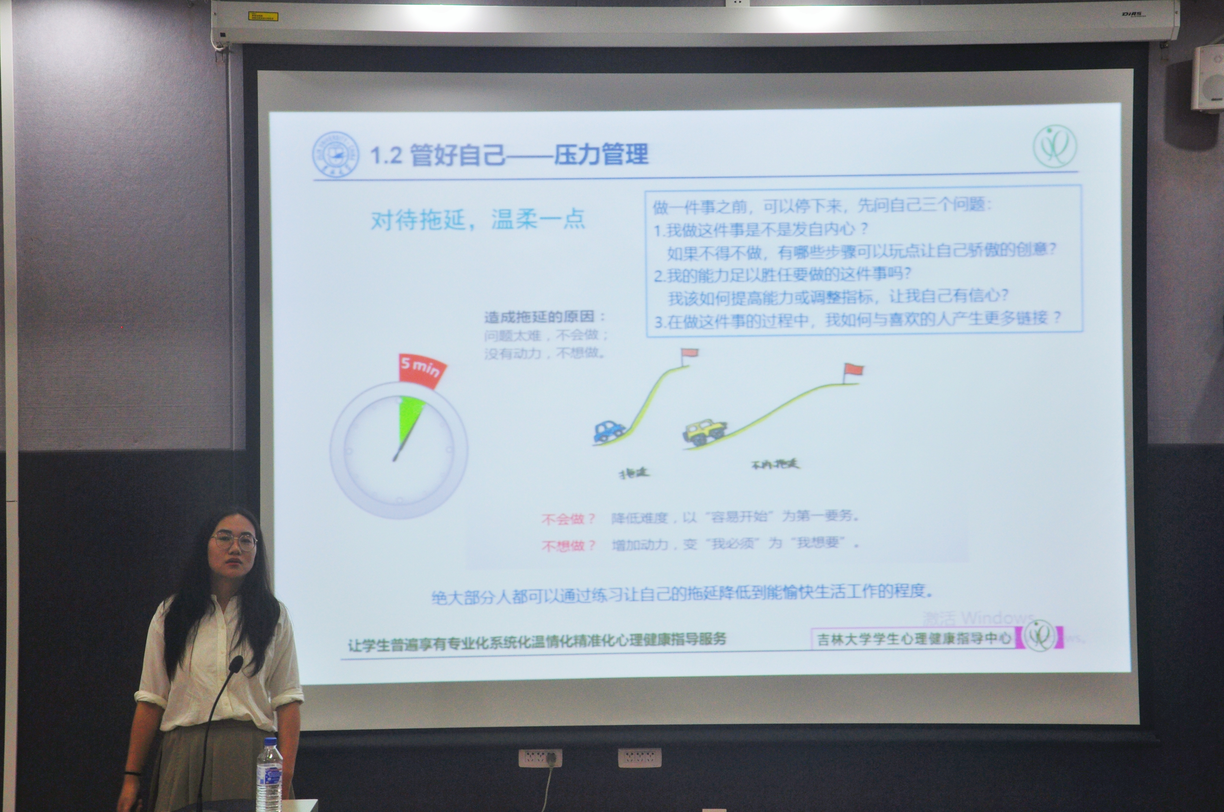 随后,张老师围绕心理健康知识的宣传普及、研究生心理健康的影响因素、增进心理健康的策略、公司的心理健康指导服务等内容,从“管理好自己”、“利用好资源”两个方面展开,强调了目标管理、压力管理和时间管理的重要性和意义,给出了如何利用知识资源、人际资源和专业资源的宝贵建议。最后,张老师呼吁同学们在遇到难以解决的心理问题时,应主动寻求帮助,借助专业的力量,伟德体育伟德体育官方网站员工心理健康指导中心的大门永远向同学们敞开。