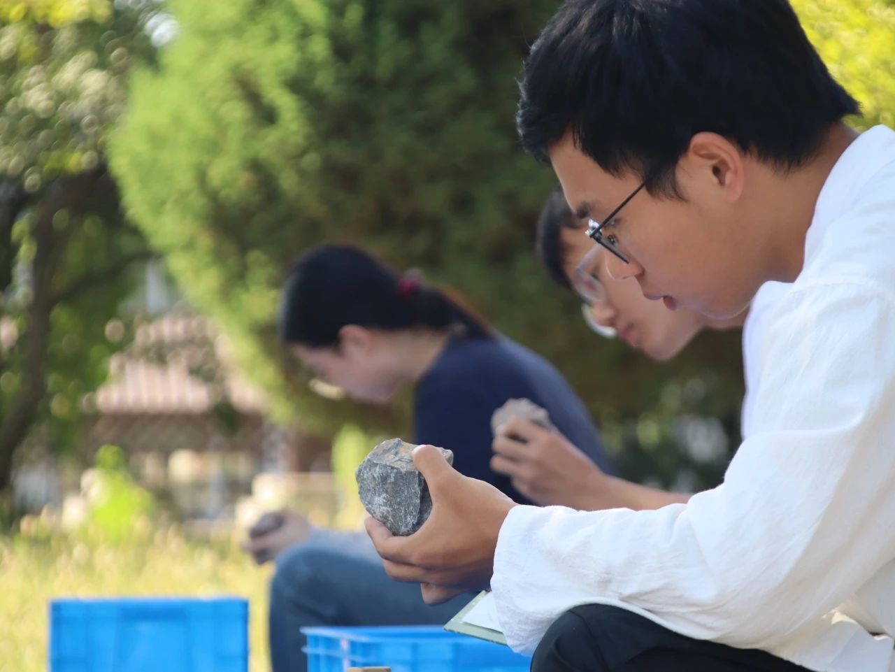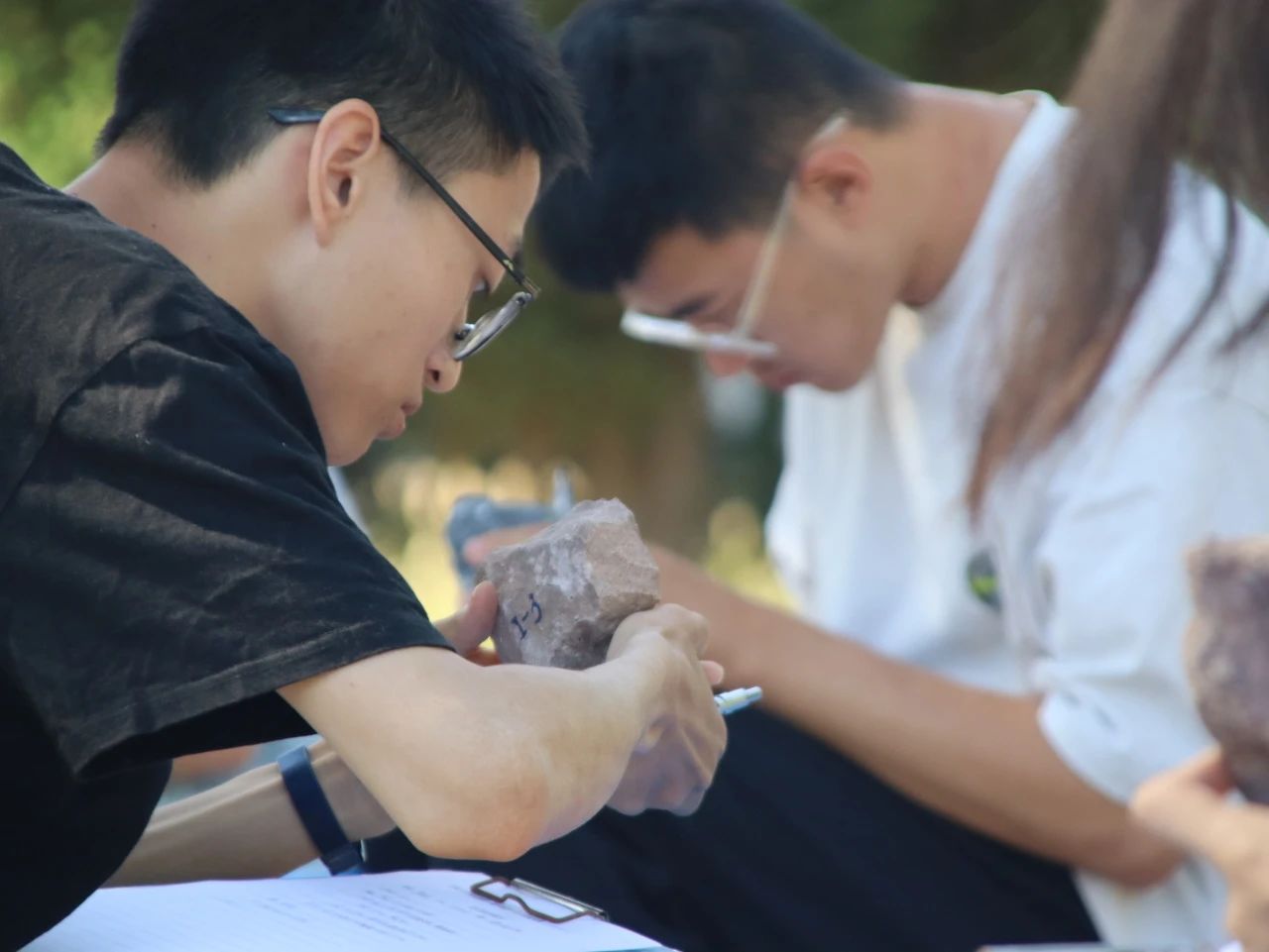 决赛环节竞争更为激烈,选手们进行更为复杂的理论和实践综合考核,展示他们扎实的地质理论知识和实际操作技能。决赛包括岩石鉴定和综合地质技能两个部分,晋级选手被分为5组分别进行两个部分的比赛,同学们以室内所学为基础,以野外所见为经验,利用小刀、罗盘、放大镜和盐酸等基础地质备品就五块岩石标本分别进行鉴定描述,以及针对具体岩石露头独立完成岩石露头点观察。经过紧张激烈的角逐,最终根据三轮测试综合评定出一等奖10名,二等奖15名,三等奖25名。