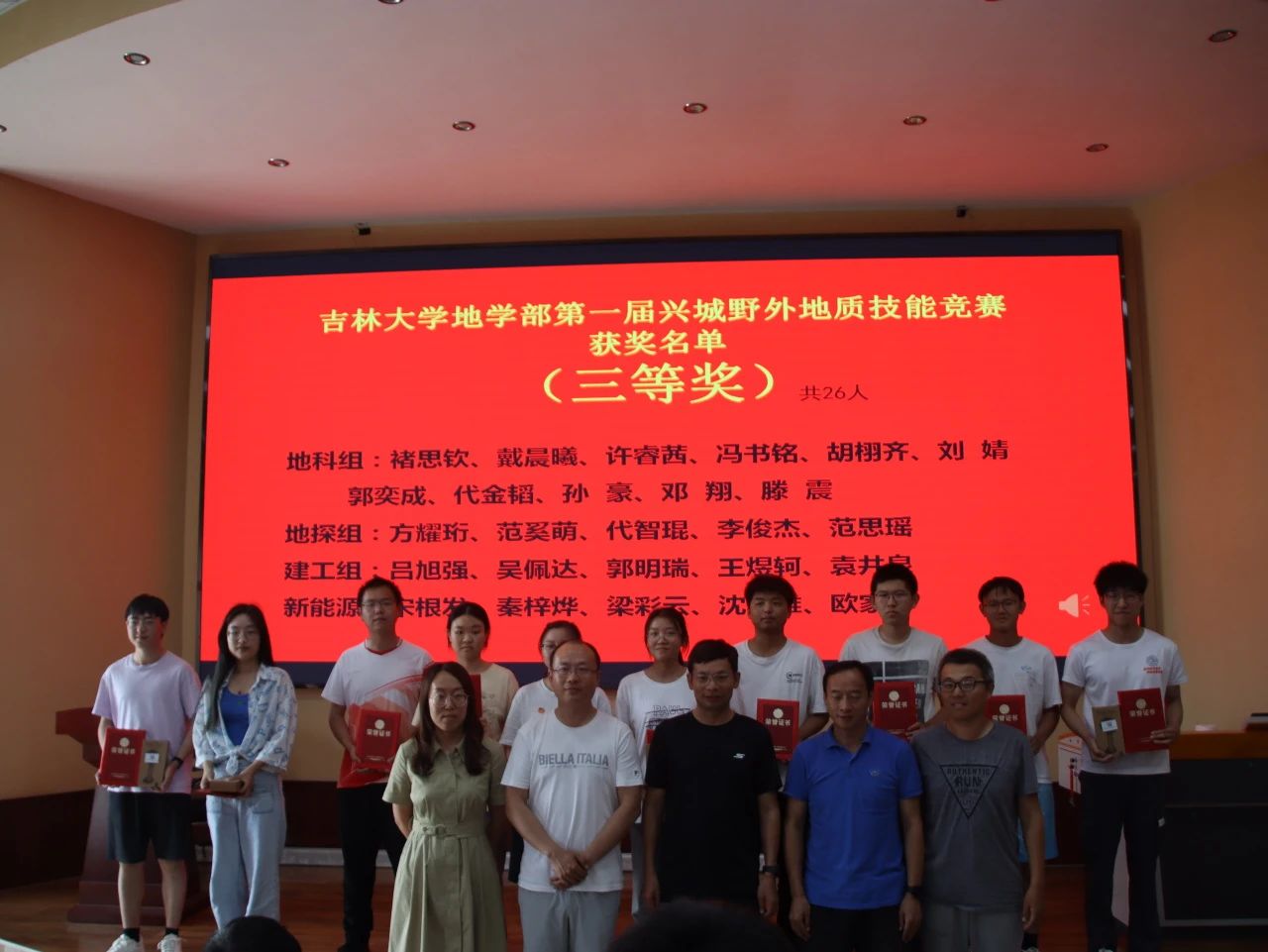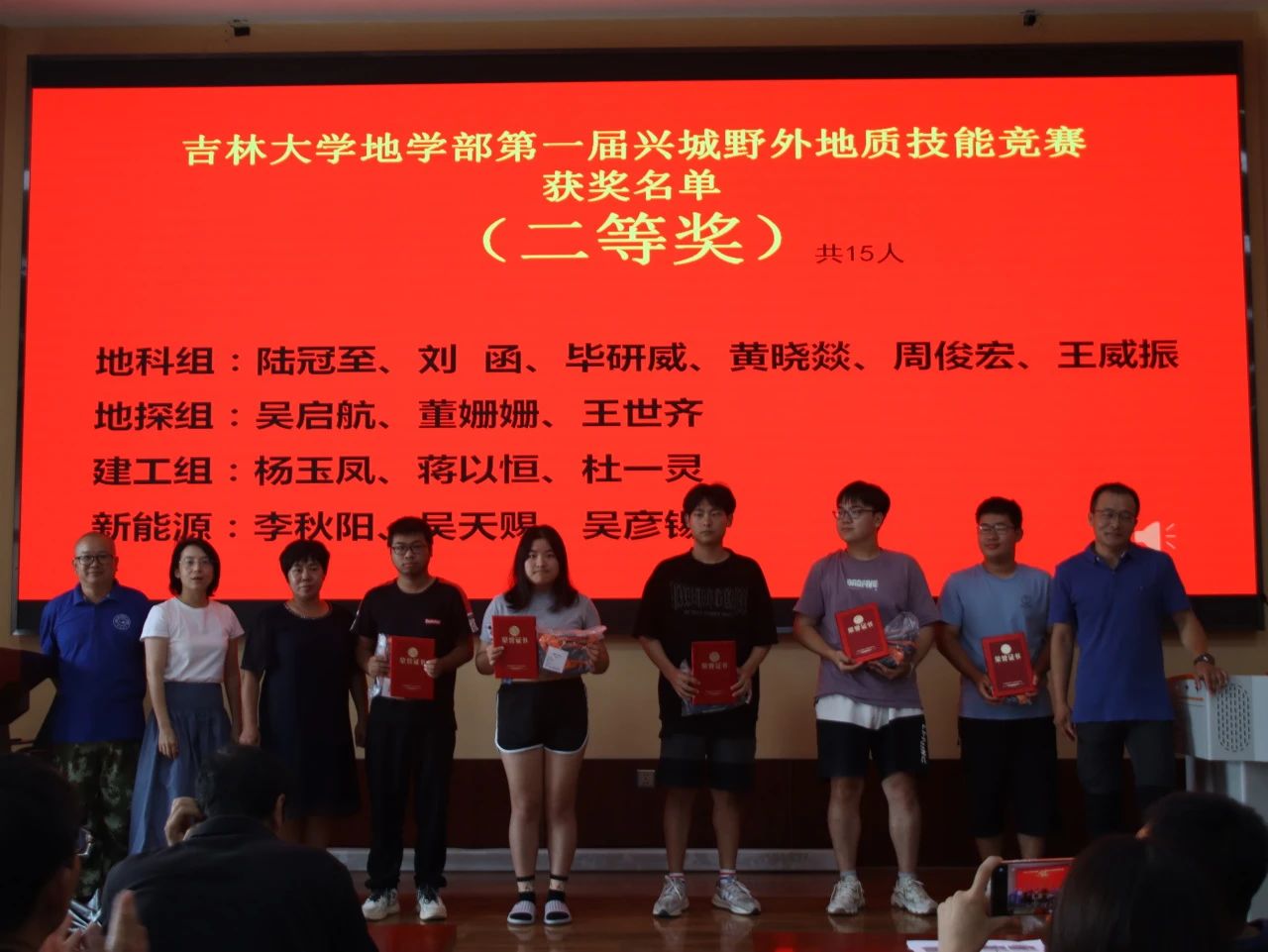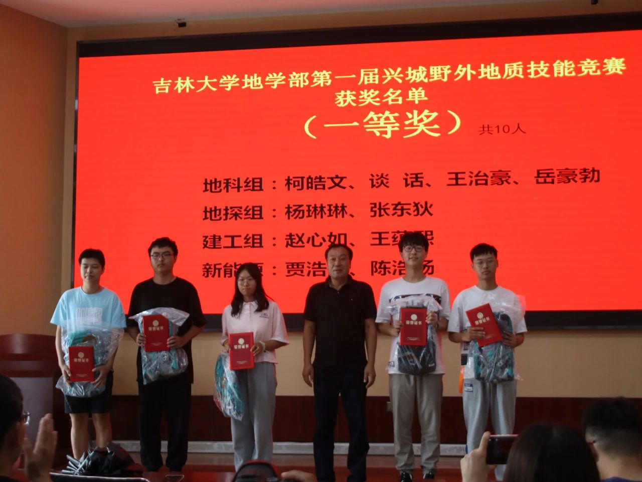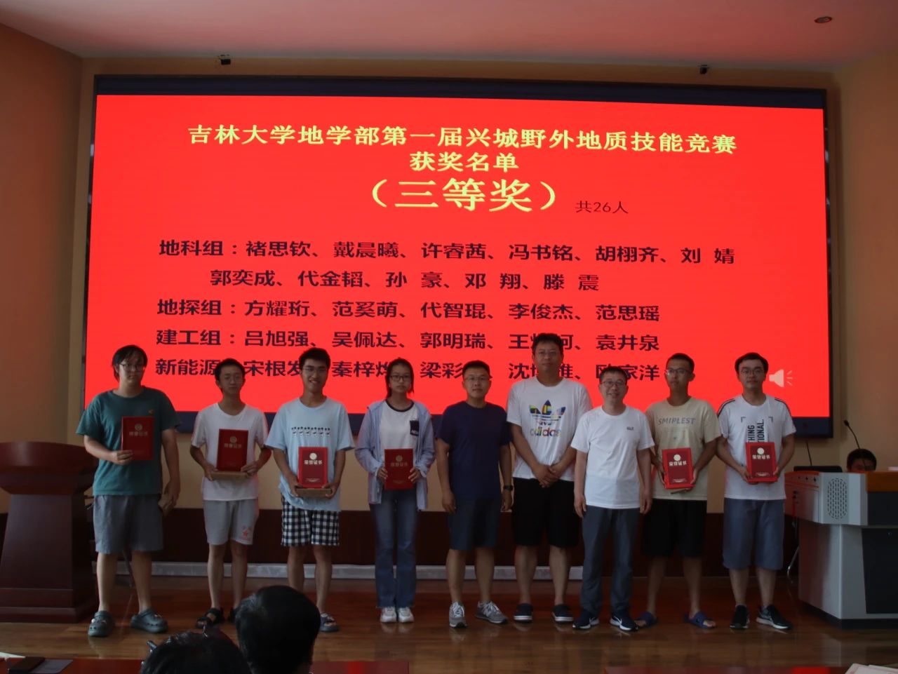 9月7日下午15时,“伟德体育伟德体育官方网站地学部第一届兴城野外地质技能竞赛”颁奖仪式于基地报告厅举行,出席此次颁奖仪式的有兴城实践教学基地党总支书记兼基地主任陈广俊、伟德体育伟德体育官方网站副经理李伟民、兴城实践教学基地实习队队长郑常青。此外多位实习队指导教师、各公司的辅导员以及竞赛获奖员工也到场参会,本次颁奖仪式由郑常青教授主持。柯皓文,谈话,王治豪,岳豪勃等10名同学获得一等奖,黄晓燚等15名同学获得二等奖,代金韬等25名同学获得三等奖。郑老师表示,此次地质知识技能竞赛为第一届竞赛,主要围绕检验同学们实习成果,以竞赛促学来展开。将来伟德体育伟德体育官方网站将协同兴城实习基地一起,为促进同学学习,检验实习效果,组织更为完善的地质技能竞赛。陈广俊主任表示,兴城基地将大力支持地质技能竞赛的举办,包括场地布置,奖品提供等方面。