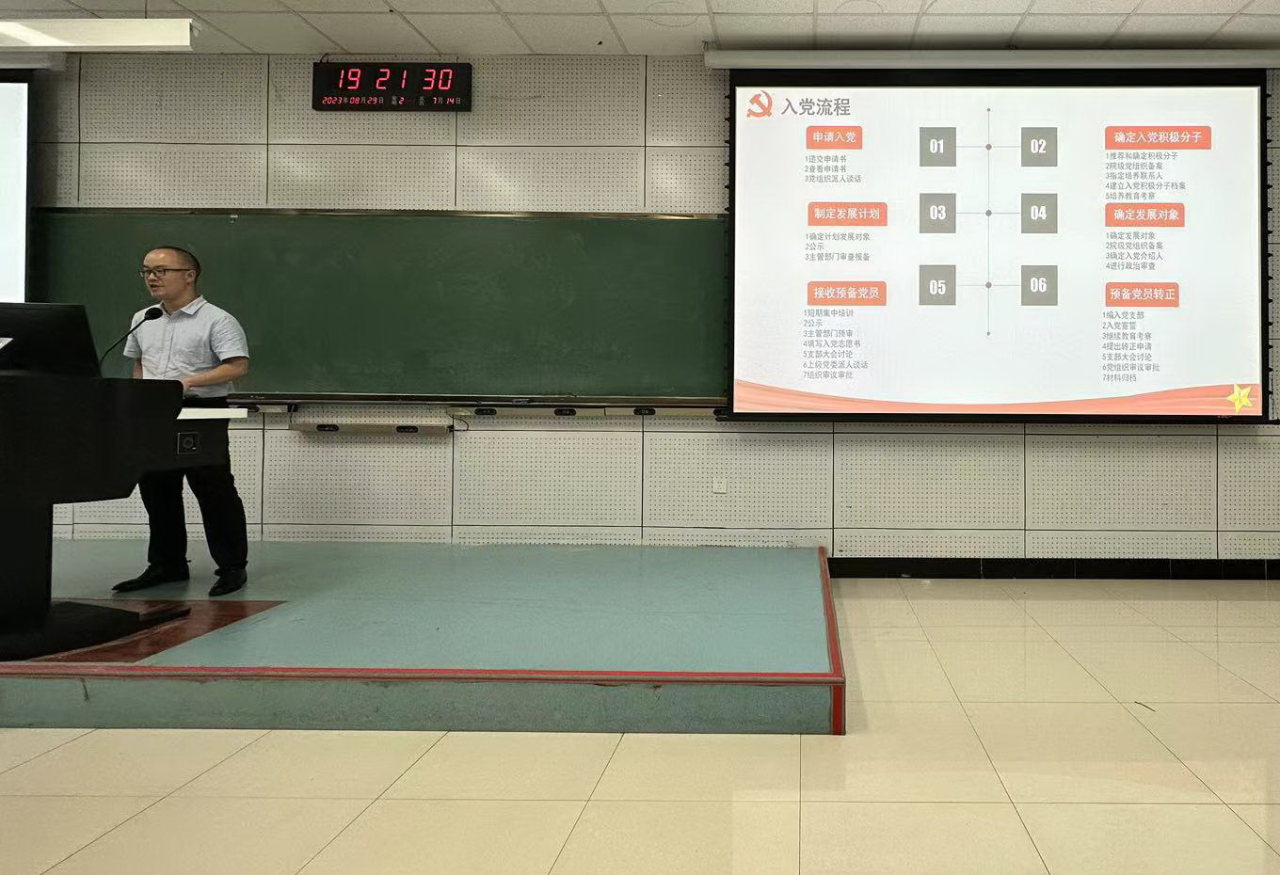 会上,杨凯凯介绍了伟德体育伟德体育官方网站入党流程。重点强调了入党申请书、思想汇报的撰写,要求必须年满18周岁才能提交入党申请。在此基础上,杨凯凯对确定入党积极分子的方法以及确定发展对象、接收预备党员、预备党员转正等流程的注意事项进行了说明。他强调发展党员工作是一项严肃的政治工作,必须坚持标准,严格按照流程发展党员。