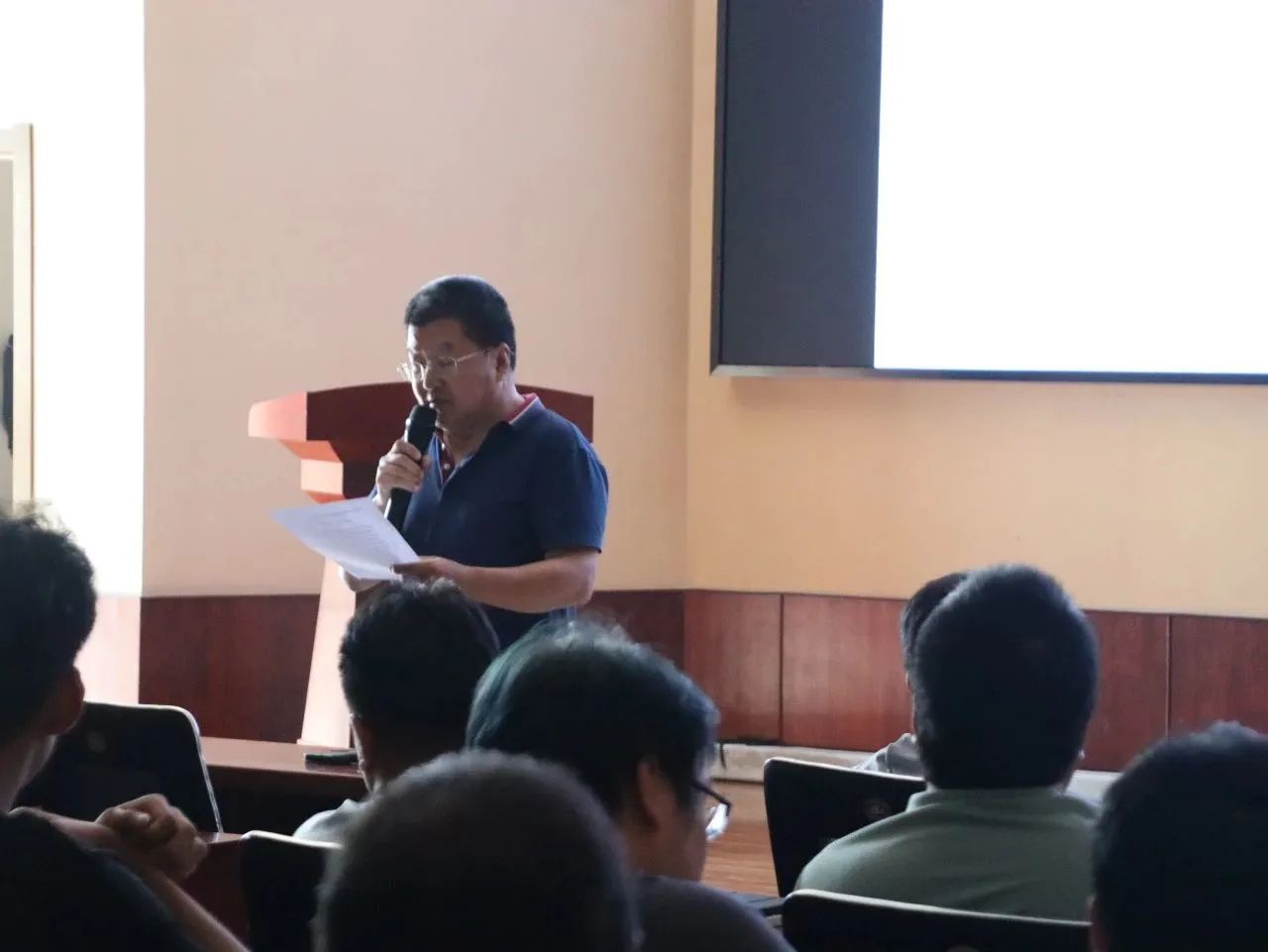 报告会上,许文良教授结合自身1977年以来的地质学习与工作经历,和蔼可亲地讲述了他参与的各项国际交流活动与俄罗斯科考项目。在他长期的俄罗斯远东科考经历中,无论是野外露营时科考队举行的丰富的晚间活动,还是许教授与队友架舟渡河、乘直升机入岛,历经艰辛才获取所需岩石的故事,又或是他几经折转耗费心力才将采集到的标本带回中国的经历,都向同学们展示了一个精彩纷然的地学世界,激发了同学们对未来地质学习生活的无限遐想。其后许教授又聚焦学科前沿问题,为同学们讲述了深层探测相关知识,以地震层析成像技术为例,揭示了东北亚大地幔楔的存在,增加了同学们对地学先进研究水平的了解。