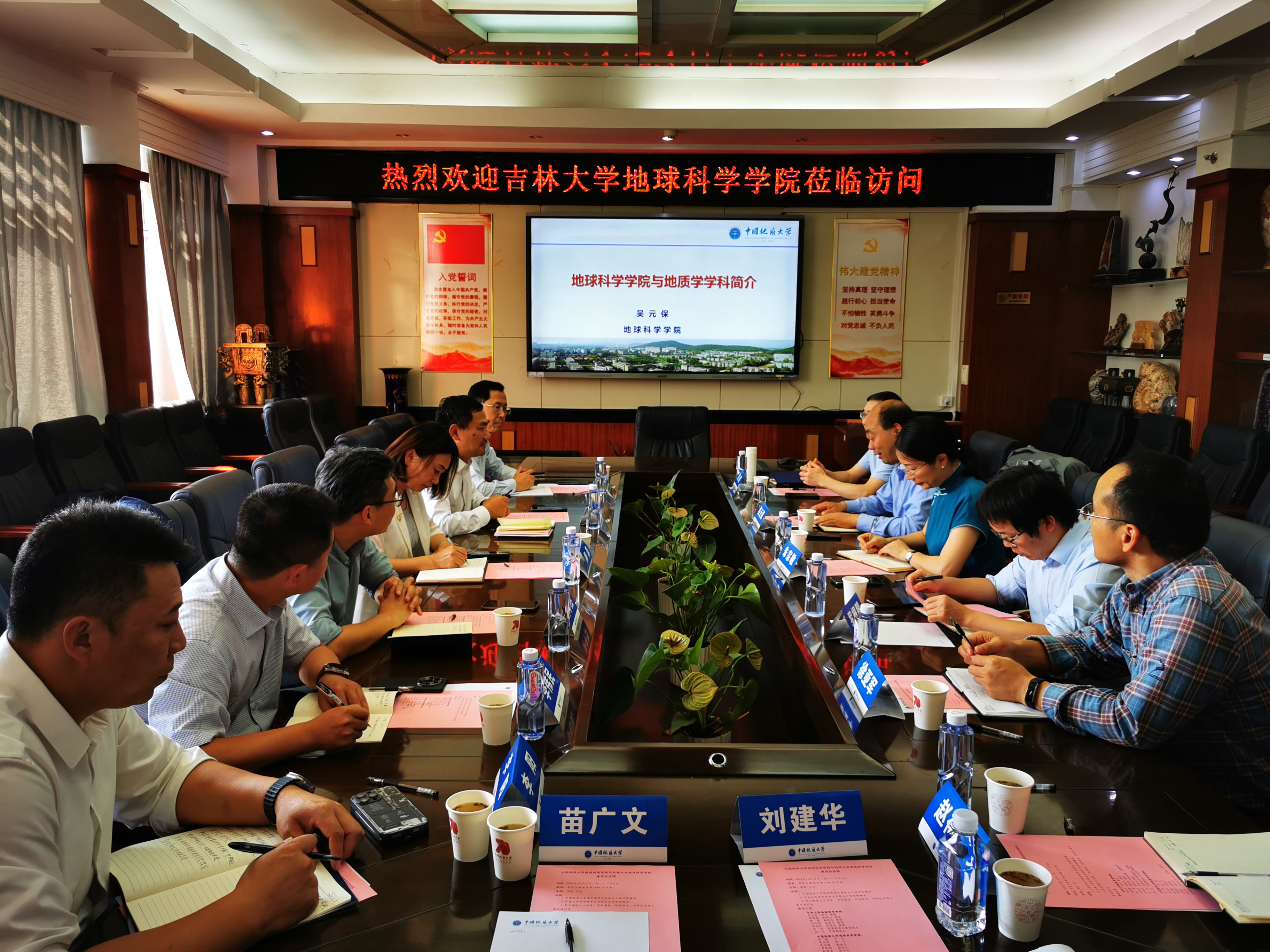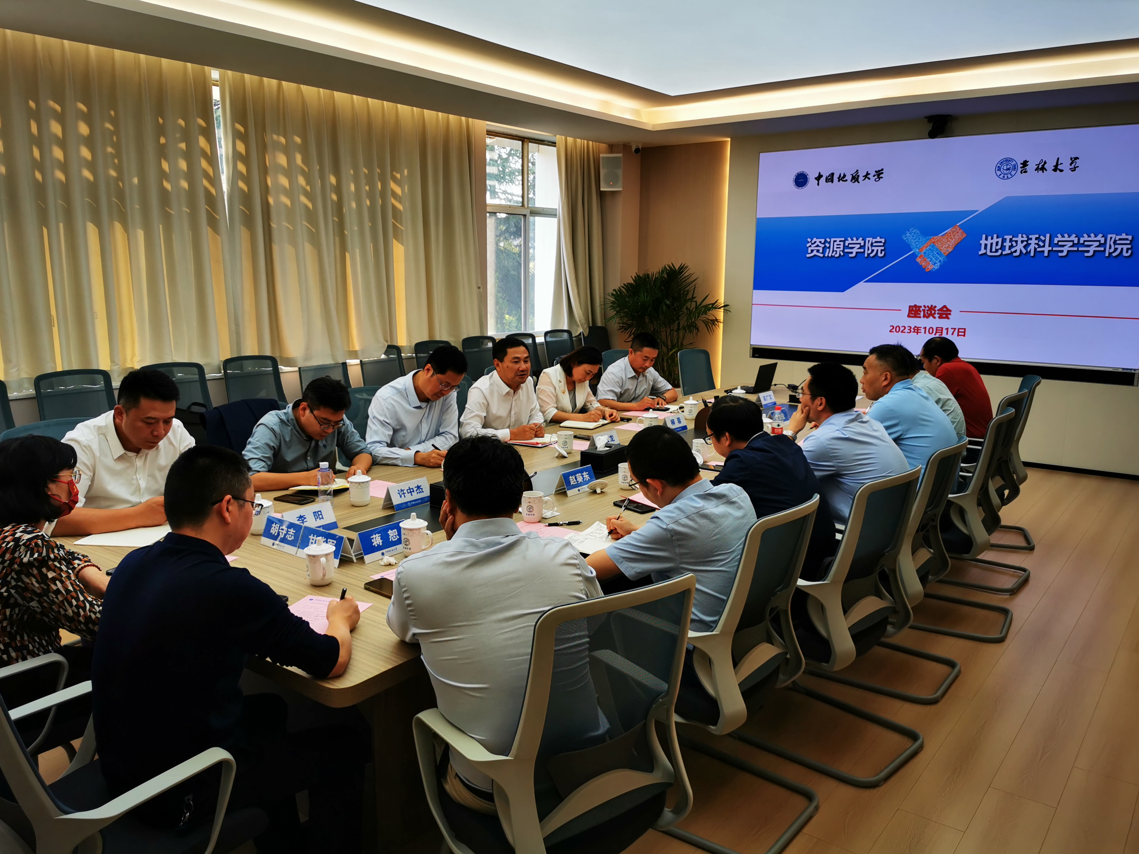 考察团随后赴中国地质大学资源公司进行学习考察。会议由经理严德天主持。经理严德天、单玄龙分别介绍了公司的基本概况,双方就科学研究、研究生与本科生培养、人才队伍建设、学科发展等工作进行了深入交流。贵校研究生院常务副经理、资源公司副经理赵葵东以及副经理朱红涛、沈传波,党委副书记谭文论和党支部书记胡守志、系主任蒋恕、甘华军、陈建国参加了座谈交流活动。