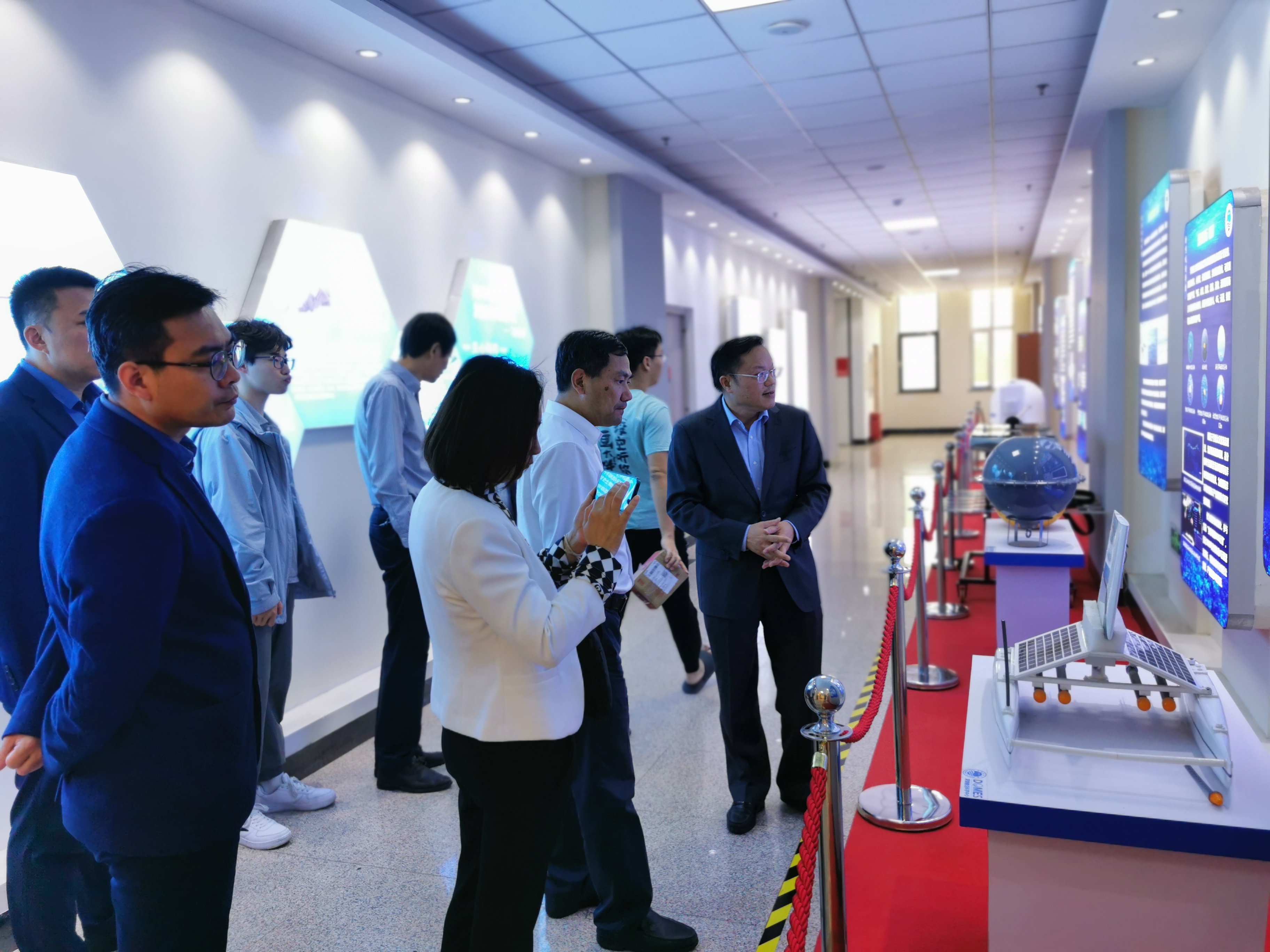 10月19日下午,考察团赴中国地质调查局青岛海洋地质研究所开展合作交流。首先,考察团参观了海洋地质科技馆、天然气水合物实验室、海洋地质样品库和码头。随后,贵所党委书记赵洪伟主持会议交流,人事教育处白凤龙处长、单玄龙经理分别介绍了双方的基本情况。随后双方在研究生联合培养与导师聘任、选拔优秀本科生参加实习营、科研合作等方面开展了深入交流,双方希望通过整合各自核心优势,进一步拓展产学研教融合空间。贵所副总工程师杨慧良、办公室主任姚长新、科学技术处处长杨金玉、海岸带室研究员高茂生、技术室高级工程师李阳、科学技术处主管张玉玺参加了交流合作座谈会活动。