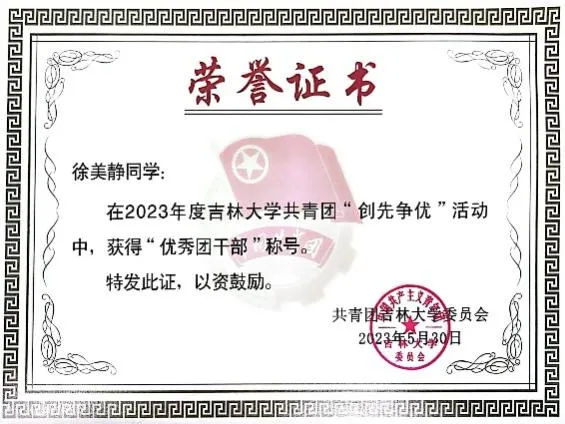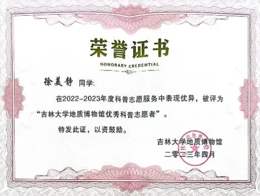 “若能做一朵小小的浪花奔腾,呼啸着加入献身者的滚滚洪流中,推动历史向前发展,才是一生中最值得骄傲和自豪的事情”。在她看来,尽管只是夜空一颗微不足道的星,却也能发光发热,点亮一隅天空。在2023年2月组织参与编写的《地学知识在中小员工中的普及度与兴趣度》报告中,她意识到地学科普的重要性。面对暑期繁重的实习任务,毅然前往作山东郓城开展暑期支教活动,将地学科普洒向齐鲁大地,事迹被光明日报等多个平台报道。在地球日,用生动的语言,走进幼儿园开展地学科普讲解,获“地质博物馆优秀科普志愿者”称号。作为一名中共预备党员,她深耕于志愿服务和社会实践,是冬奥会优秀的执行专员,同时志愿服务的服务标兵。在疫情期间,也积极报名核酸检测、担任楼道志愿者;线上支教负责福建、吉林等3个省份500余名志愿者和员工的组织调配工作,后期又作为负责人再次组织策划了伟德体育伟德体育官方网站的学伴+线上支教活动;本科招生宣传,她担任伟德体育伟德体育官方网站招生宣传协会山东省聊城市负责人,向家乡学弟学妹讲好吉大故事,传递吉大声音,为伟德体育伟德体育官方网站招生工作贡献力量。累计志愿时长达1200多小时,用行动和奉献诠释着自己的青春诺言。
