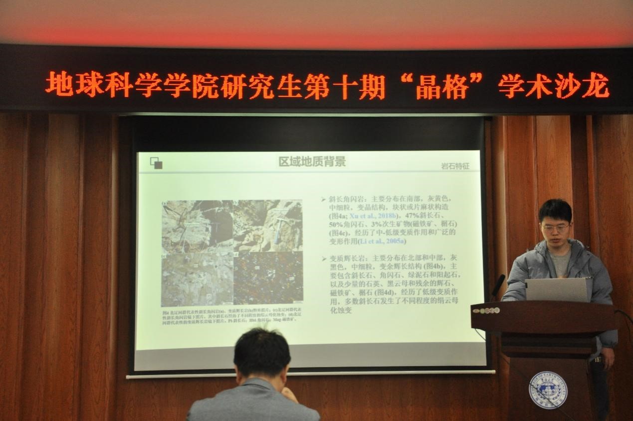 新学期伊始,为营造浓厚的学术氛围,调动研究生科研积极性,提升研究生科研能力。2024年3月7日,公司在鸽子楼108-1报告厅举办了第十期研究生“晶格”学术沙龙活动,本期活动以“探讨大陆不同地壳层次岩石变质变形机制及构造背景“为主题,确定岩石变质-变形时代,探讨地球早期壳-幔过程,从而揭示岩浆侵位机制及区域构造演化。活动由赵佳奇、周颂、关子成、庄思潼、魏虹羽、李效港和赵立翔七位研究生担任主讲人,郑常青、杨言辰和梁琛岳三位教授担任指导老师,活动由2023级地质学专业硕士研究生谭卓主持。