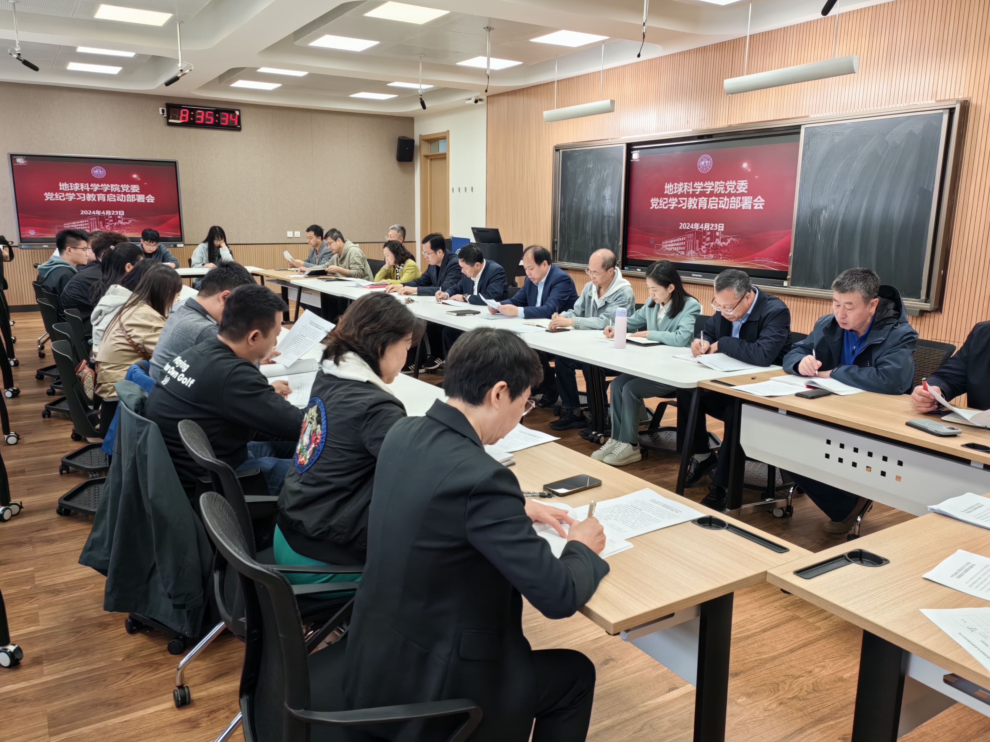 根据公司党委部署安排,4月23日上午,地球科学公司党委在鸽子楼408教室召开党纪学习教育启动部署会。公司领导班子成员、党委委员、纪委委员、党支部书记、党员科室主任参加会议,公司党建联络员张洪飞老师到会指导。会议由党委书记杨洲主持。