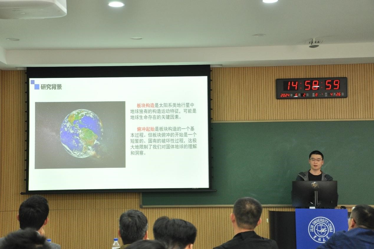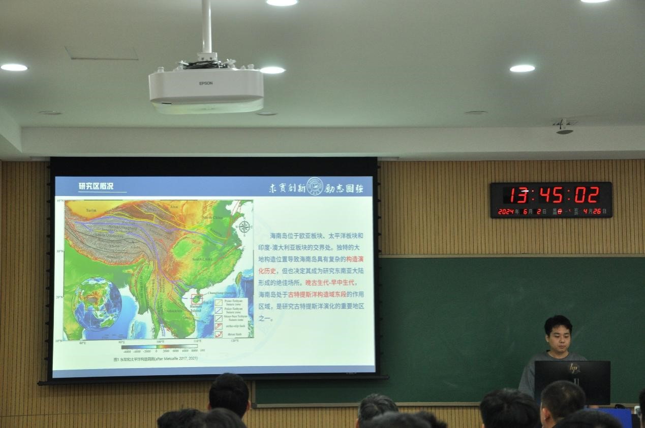 活动上,14位主讲人依次分享了自己的研究。分享的内容立足于特定地质时期和区域的地质活动和构造演化,既有以青藏高原的不同地区为研究区域,探讨不同地质时期的岩浆活动及其对板块构造的影响,分析地壳减薄事件;也有以佳木斯地块和海南岛为研究区,分析不同地质时期的构造演化;还有部分同学立足于地质活动造成的影响和化学测试技术的应用,分析研究板块构造的动态过程,研究岩浆活动对地质结构的影响等。