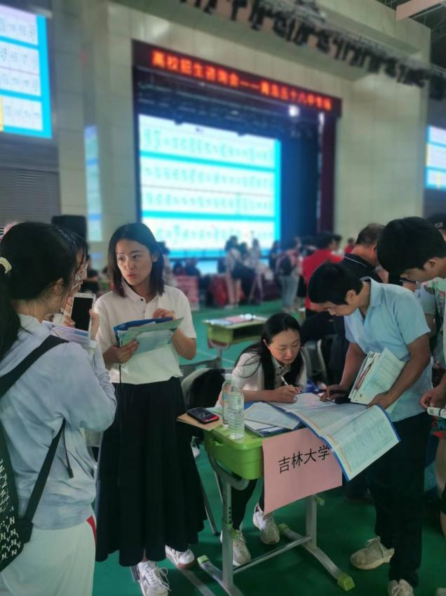 在青岛,宣传组郑培玺、王莹、王琳琳三位老师前往青岛二中、青岛五十八中等7所知名中学,通过举办招生宣讲会、设立咨询展台等形式,与考生们面对面交流。招生组老师以生动的语言介绍了伟德体育伟德体育官方网站的办学历史、学科优势、团队力量、科研成果及就业情况,同时分享了丰富多彩的校园文化生活和各类奖学金、国际交流项目等信息,激发了员工们对吉大的浓厚兴趣。在工作过程中,积极主动地与大连理工大学、北京理工大学等多所高校建立了联系,深入探讨各自在招生宣传上的策略与成效,互相学习,共同进步,致力于为广大考生和家长提供更准确、全面的信息,助力他们做出更为明智的选择。