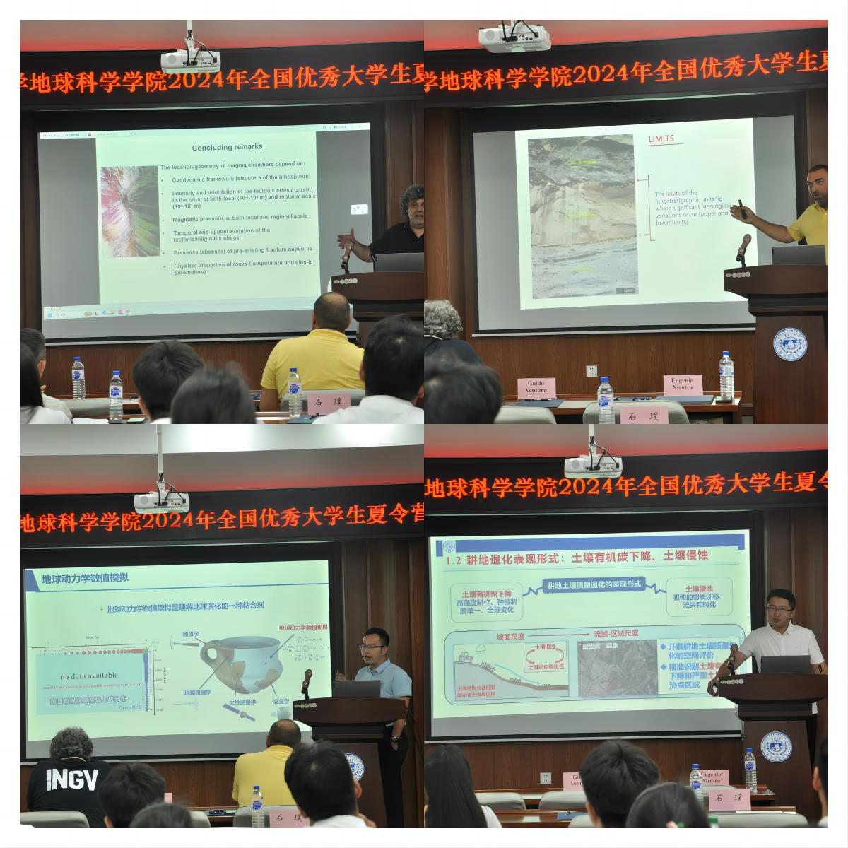 7月11日上午,为营员们安排了学术报告。来自意大利国家地球物理与火山研究所的高级研究员Guido Ventura、卡拉布里亚大学,生物、生态与地球科学系研究员Eugenio Nicotra、伟德体育伟德体育官方网站教授刘仲兰、伟德体育伟德体育官方网站副教授石璞分别为大家带来学术报告。题目分别为:The role of tectonics in controlling the location and geometry of magma chambers(构造在控制岩浆室的位置和几何形状方面的作用)、From the explosions to the deposits: main clues on explosive activity and of their impact(从爆炸到沉积:爆炸活动及其影响的主要线索)、地球动力学:探索宜居地球演化的关键手段、东北黑土区耕地土壤质量退化的遥感评价模型研究。