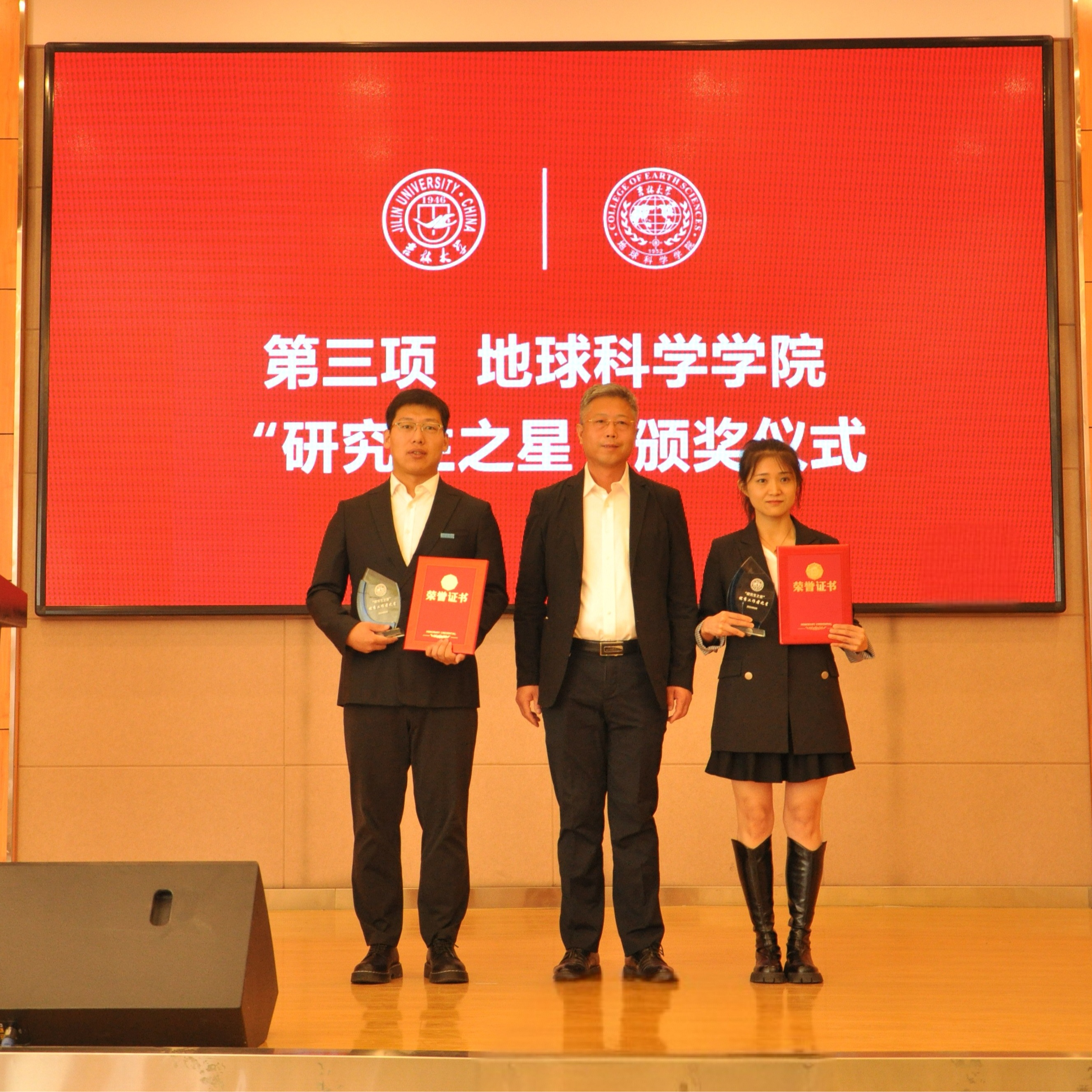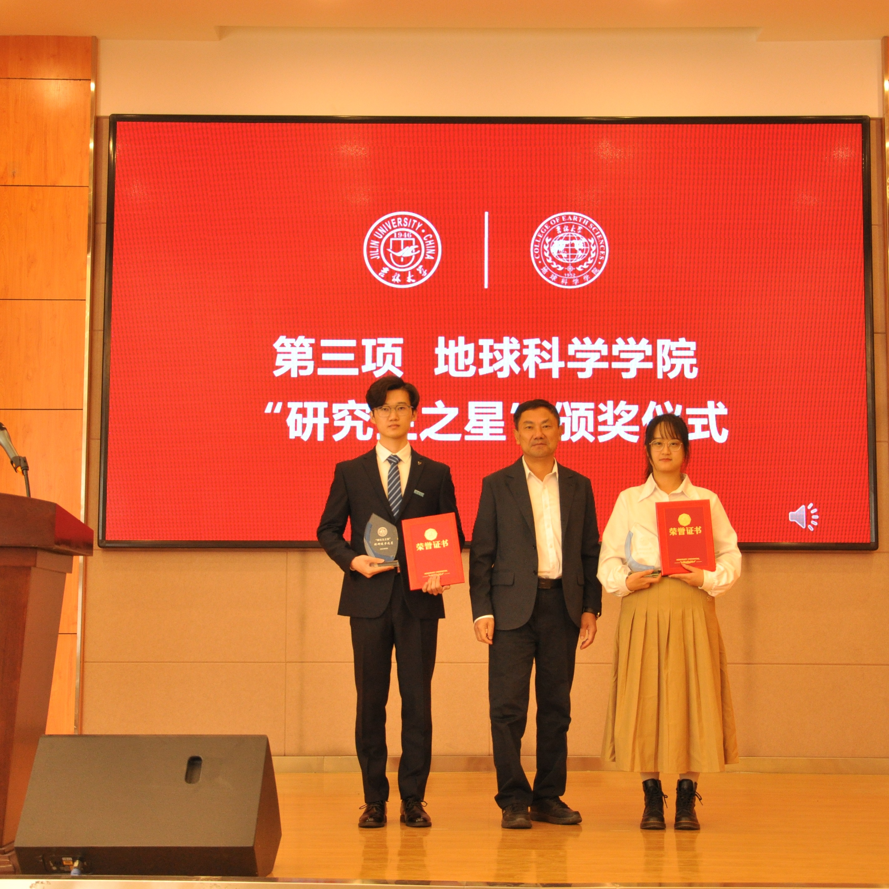 典礼上,副经理柳蓉宣读了《关于表彰王世昌等10名研究生获得伟德体育伟德体育官方网站“研究生之星”的决定》。公司党委书记杨洲、公司经理单玄龙,专业学位培养指导委员会主任委员王璞珺、行政副经理苗广文、地质学系主任李世超、国土资源系主任王冬艳、博士生导师杨晨分别为“研究生之星”颁发荣誉证书和奖杯。