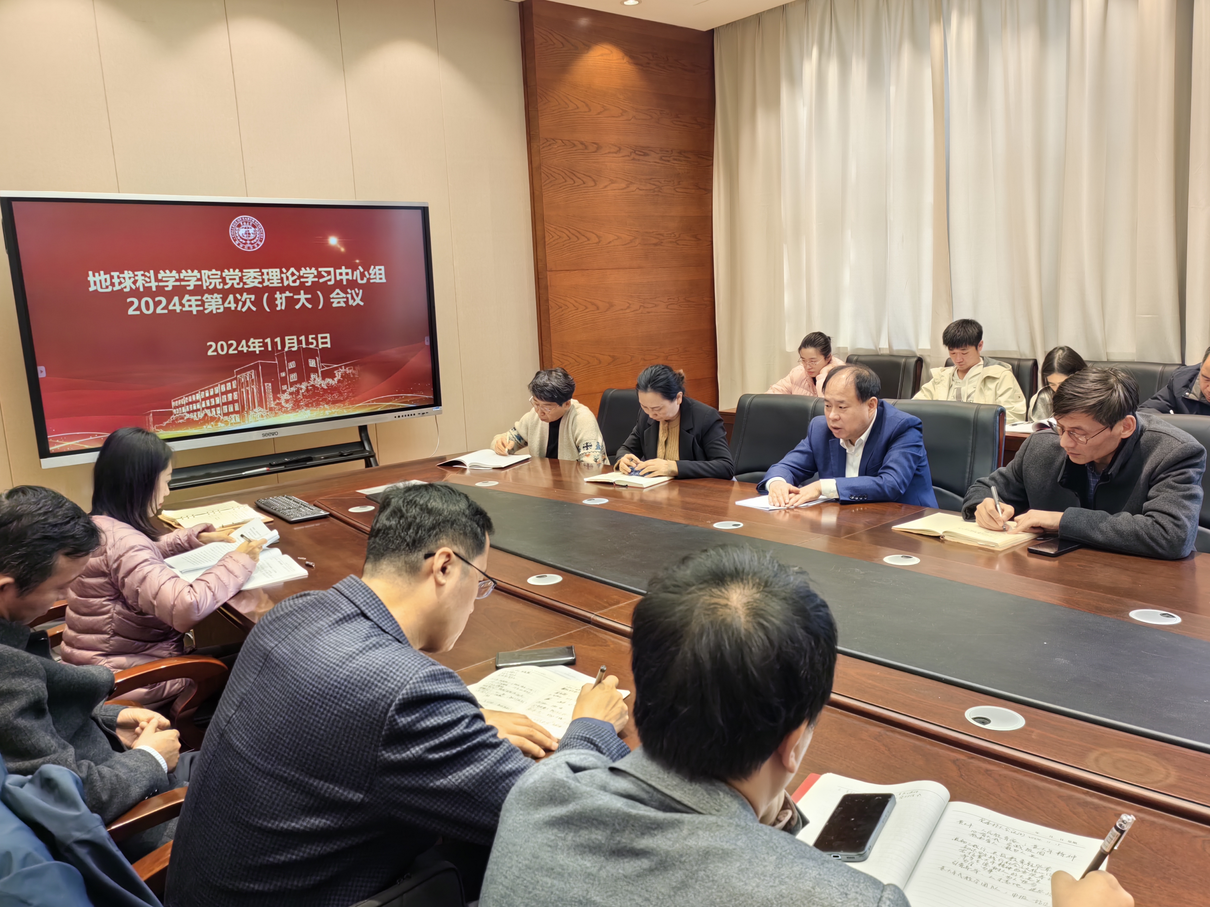 2024年11月15日,地球科学公司党委理论学习中心组召开扩大会议专题学习“人民教育家”黄大年精神,公司党委委员、领导班子成员、教工党支部书记、机关科室主任参会,会议由党委书记杨洲主持。