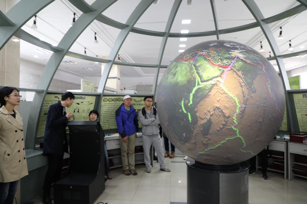 上午9点,同学们前往地球演化综合实验室。在霍亮老师的带领下,同学们通过观察岩石和古生物标本,结合自己的所学知识,一步一步恢复着前寒武纪到第四纪距今五亿年的地球演化进程。在此过程中,霍亮老师借助数字地球设备,为同学们展示了大陆板块的漂移、各个地质时期地球演化、火山活动与地震带、地震、海啸等灾难模拟、行星地质等典型的现象,帮助同学们进一步直观地感受地质演化。在孟庆涛教授的带领下,同学们参观了吉林省油页岩与共生能源矿产重点实验室,了解公司目前最先进的烃源岩评价设备。孟庆涛老师对各位同学寄予希望,希望大家能在未来的学习中,自己学做实验、多做实验、会做实验,这样才能在科研工作中发现问题,形成有自己独特的思路,才能在科研的道路上越走越远。