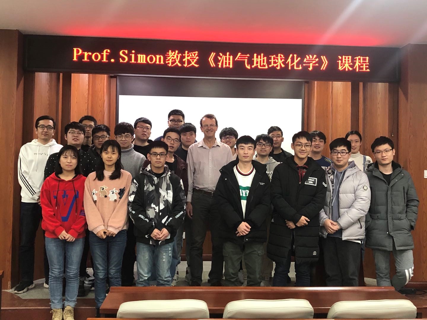 课前,同学们积极预习Simon教授准备的课件;课堂上,同学们认真听讲,积极思考并回答教授提出的问题。课后,同学们还对自己感兴趣的话题与Simon教授进一步交流。课程结束后,国内课程任课老师与Simon教授就《油气地球化学》课程教学内容、教学目标以及教学方式进行了深入的研讨,有利的促进了该课程的后续改革建设。