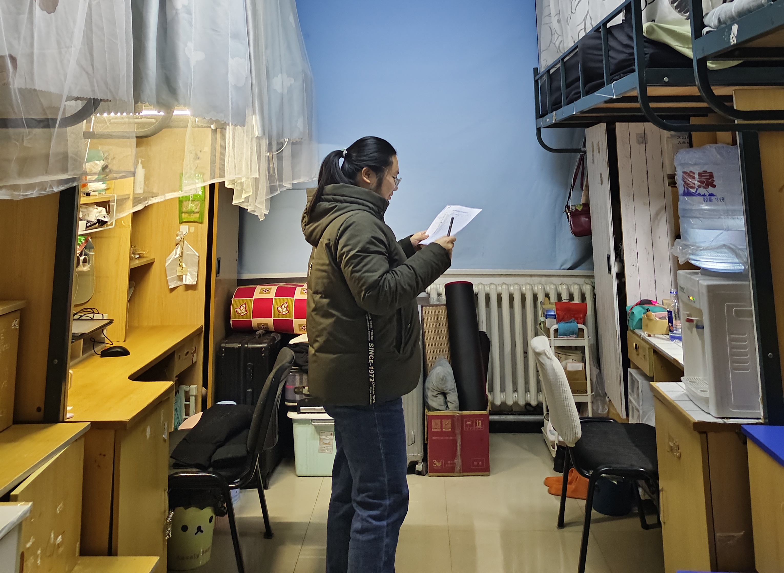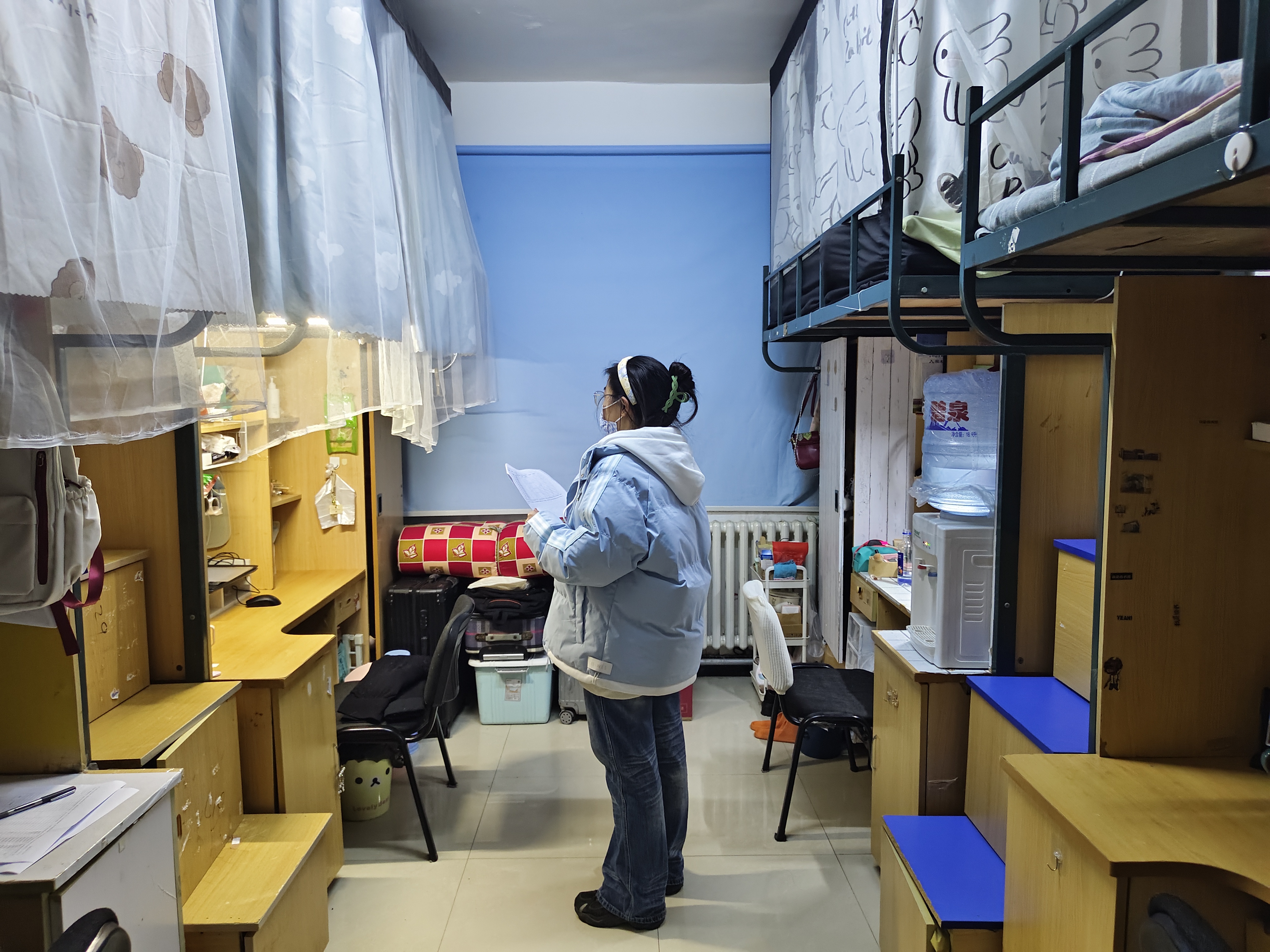 检查过程中,工作小组依据《标准》,按计划对公司所有研究生寝室进行了拉网式、全覆盖的自查工作。检查内容不仅涉及寝室内务卫生,更将安全隐患排查作为重中之重,确保研究生人身和财产安全。工作小组着重检查了寝室内是否存在大功率电器、易燃易爆物品及管制器具等安全隐患,将寝室安全情况作为衡量寝室管理质量第一标尺,严把寝室安全大关。在确保寝室安全达标基础上,工作小组严格按照《标准》逐项打分,对寝室内的学习用品、生活用品摆放,床上用品叠放,床下及书桌下物品整理,以及被褥、衣物等是否有异味等进行了细致检查。此外,工作小组还借此契机,积极了解研究生的思想状况,关注研究生在日常学习生活中遇到的重难问题,倾听需求,及时解决,着力做好研究生生活保障工作。