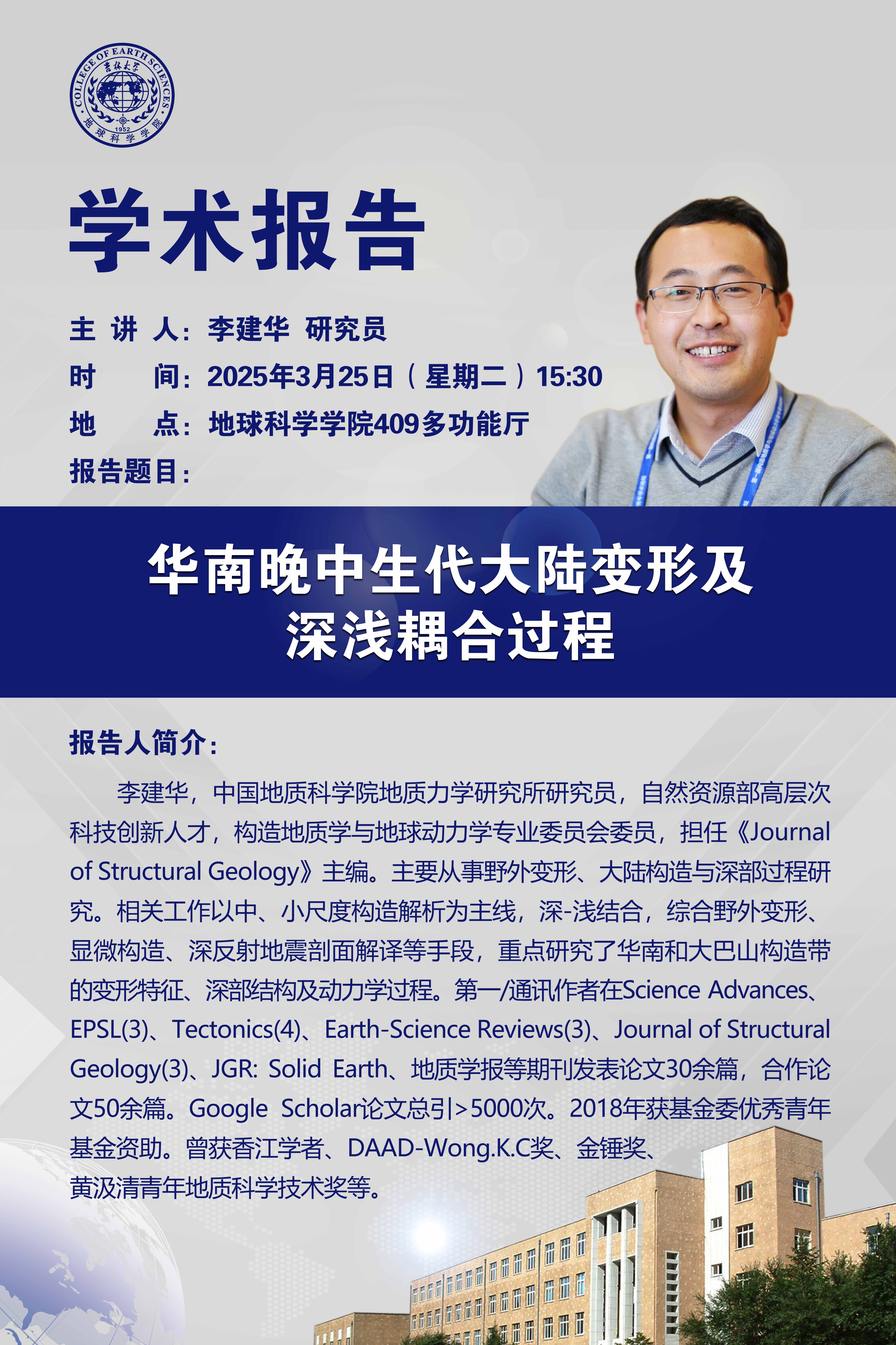 中国地质科公司地质力学研究所李建华研究员学术报告