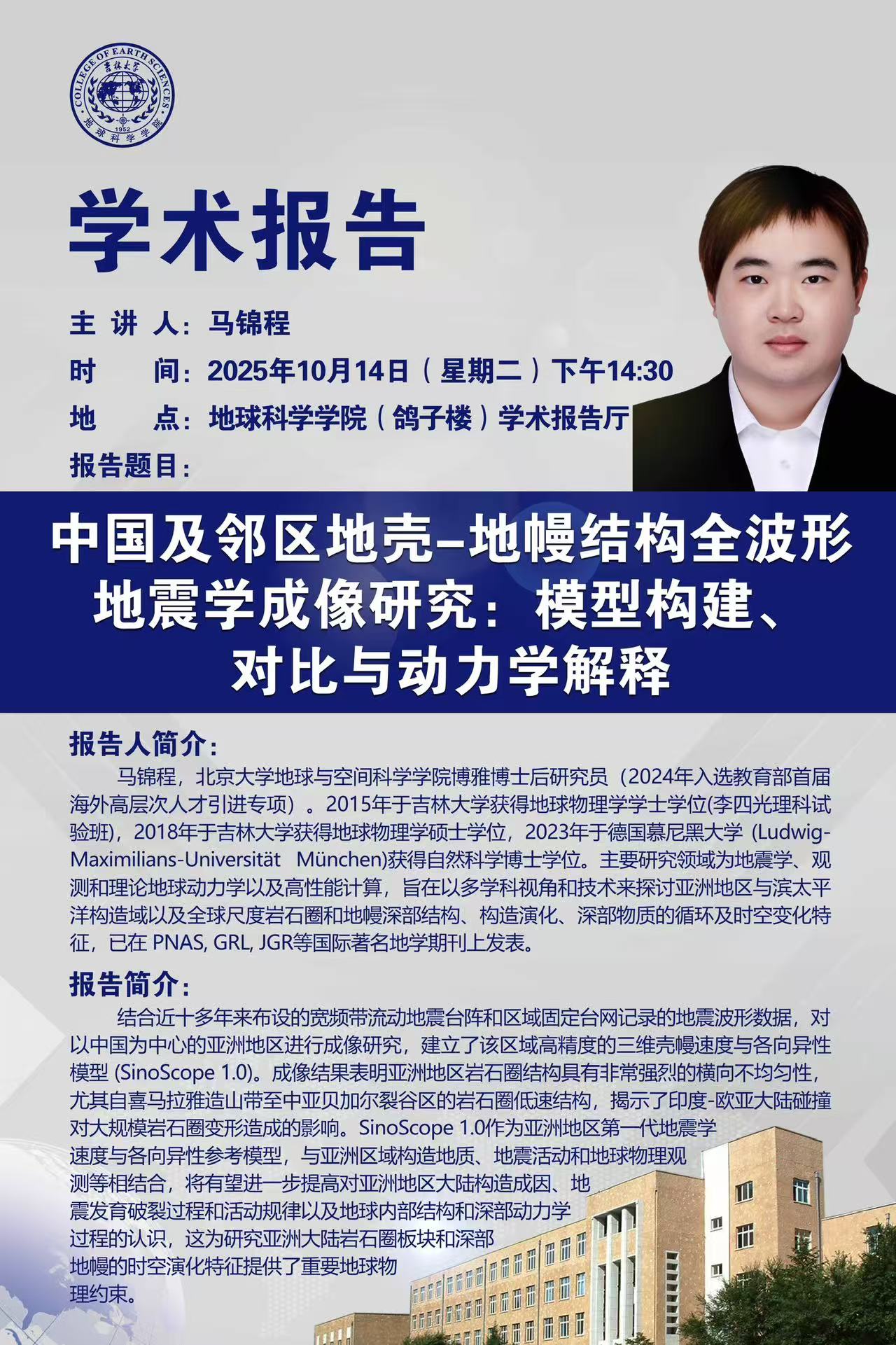 北京大学地球与空间科学公司博雅博士后研究员马锦城学术报告