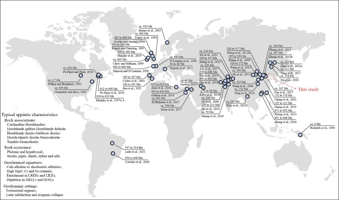 Xiang-Yu Yan (闫相宇), De-Bin Yang* (杨德彬), Wen-Liang Xu (许文良), Hao-Tian Yang (杨浩田), Mao-Song Mu (母茂松), An-Qi Wang (王安琪), Yi-Kang Quan (全昳糠), Le-Ran Hao (郝乐燃). Modification of the lithospheric mantle induced by recycled crustal components: Insights from Early Cretaceous appinites from the Liaodong Peninsula, NE China. 2022. Geological Society of America Bulletin. 原文链接:https://doi.org/10.1130/B36352.1. 该研究受国家自然科学基金(42072063、41722204)等项目联合资助。
