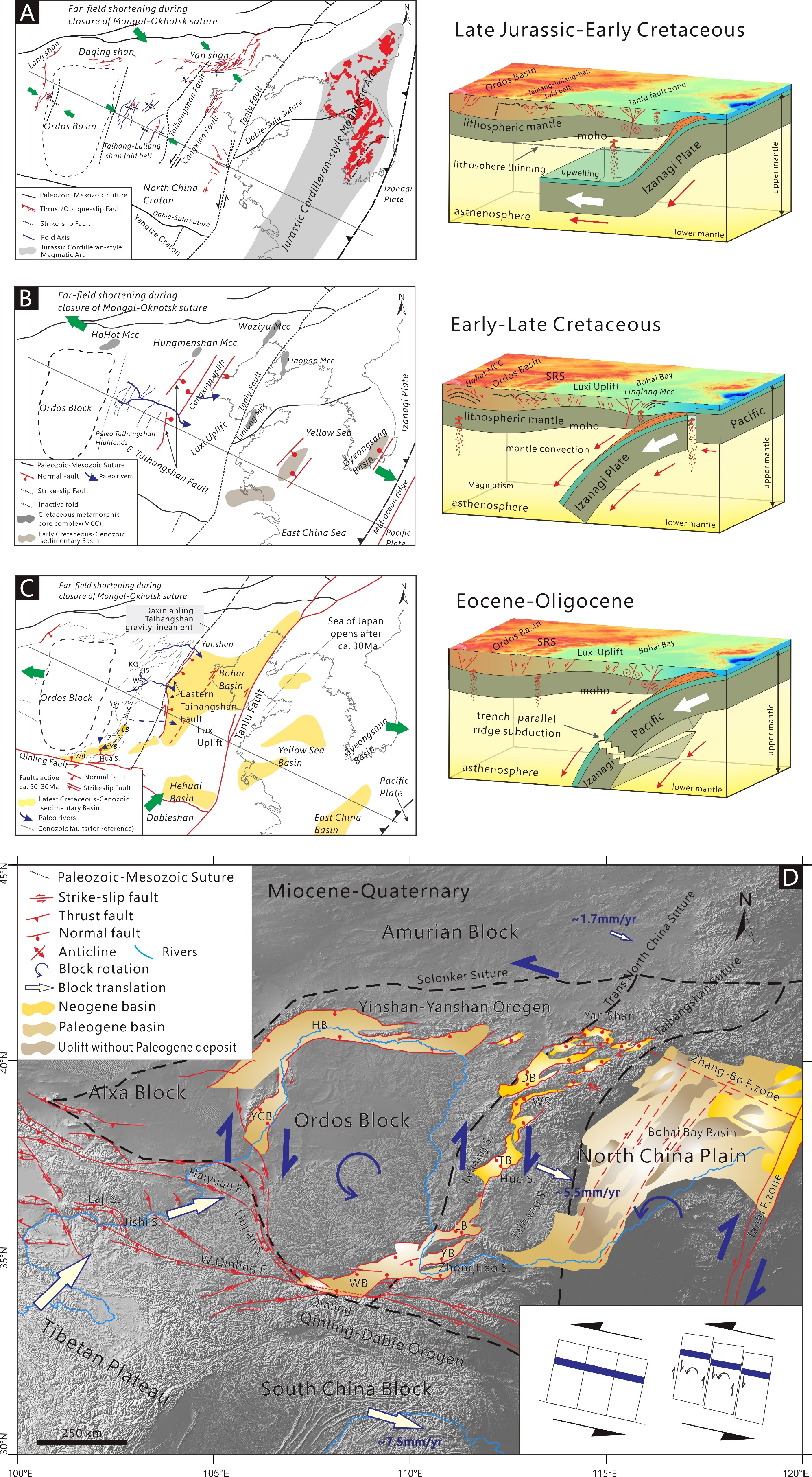 图5 东亚晚中生代以来的地球动力学模型