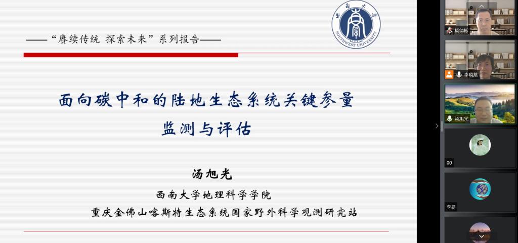 本次报告邀请到西南大学教授,博士生导师,重庆市巴渝学者青年学者汤旭光老师,报告的题目是“面向碳中和的陆地生态系统关键参量监测与评估”。报告会由伟德体育伟德体育官方网站国土资源系李晓燕教授主持。