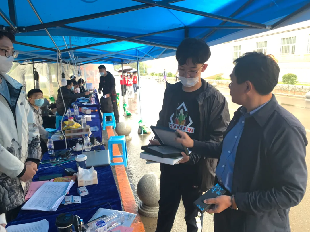 在迎新工作现场,公司党委书记杨洲、经理单玄龙、党委副书记马旭三位老师来到迎新工作一线,在与报到新生进行充分交流的同时为新生送上公司为他们精心准备的纪念品,用“满满的仪式感”让新生同学感受到公司的光辉历史和对他们的满心期许。