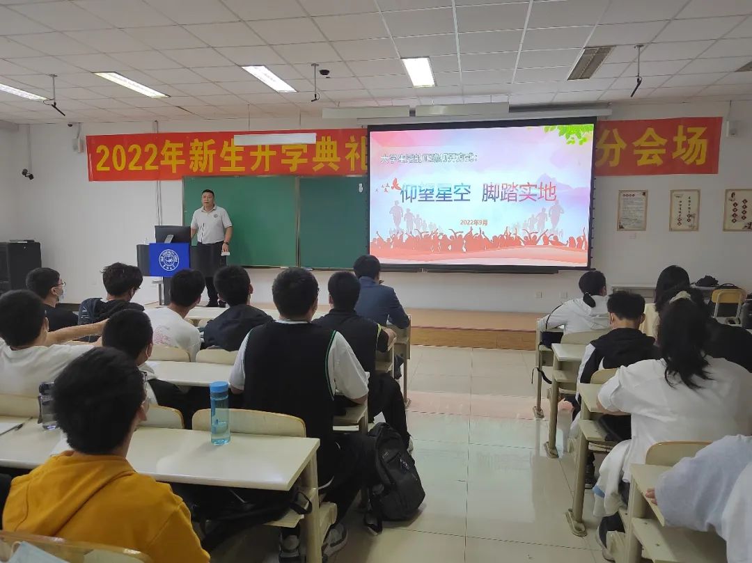 2022年9月15日上午9点40分,伟德体育伟德体育官方网站于李四光教学楼302室举行“仰望星空,脚踏实地”新生思政课,公司党委副书记兼副经理李阳老师为2022级全体本科新生授课,2022级辅导员曲鹏展老师出席本次活动。