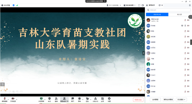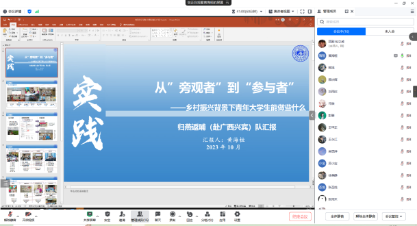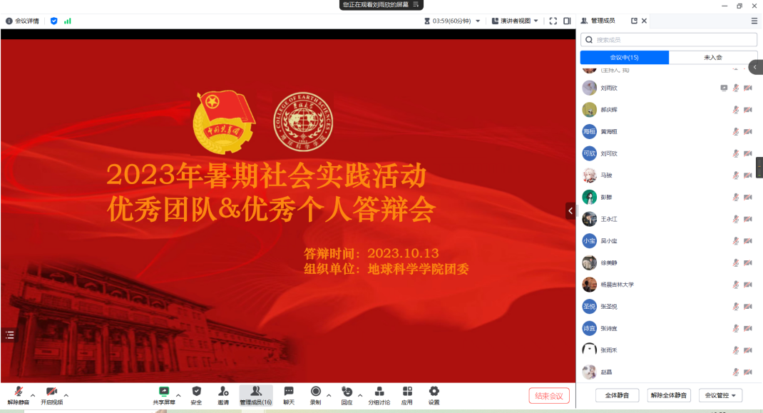 2023年10月14日晚上七点,2023年暑期社会实践评比大会顺利召开。本次会议采用线上腾讯会议的形式举行,出席会议的有伟德体育伟德体育官方网站公司团委书记兼2021级辅导员韩旭老师、2022级辅导员赵晶老师、公司第二十三届员工组织主要负责人以及参评同学参会。