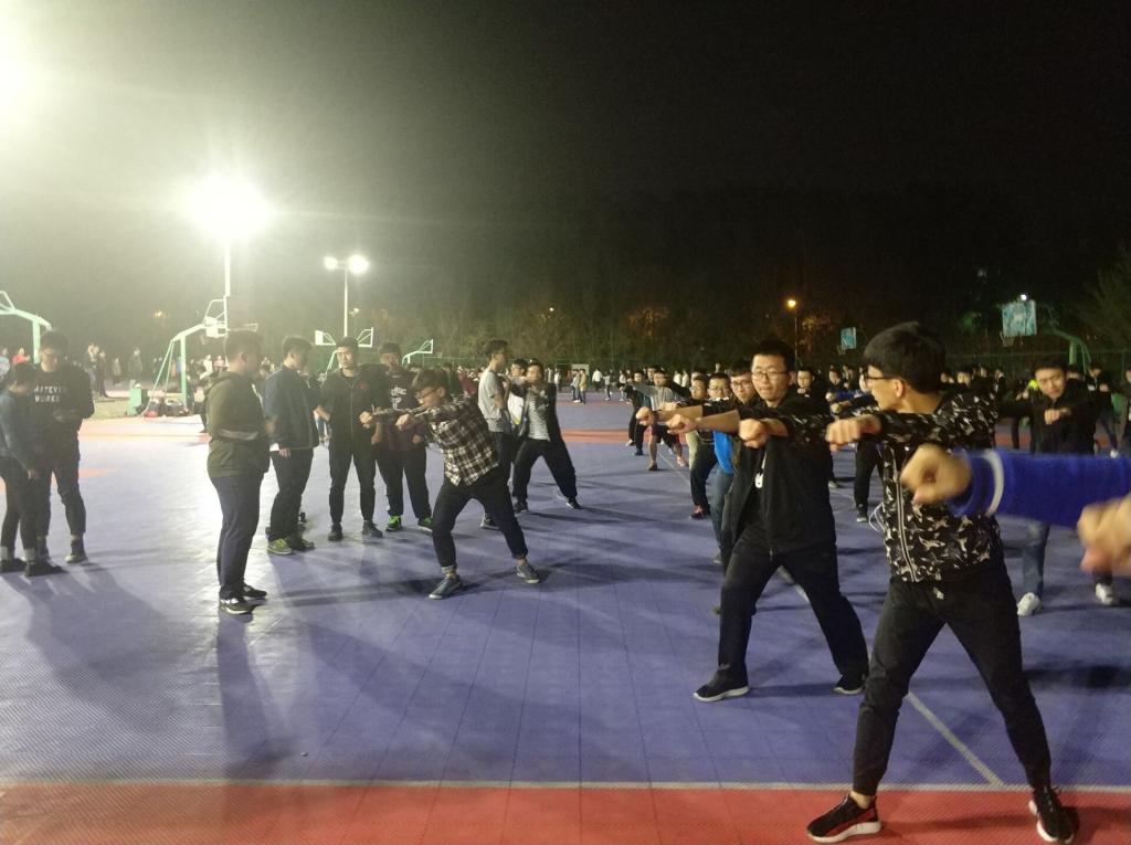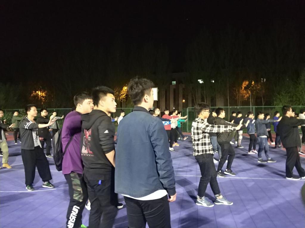 2018年5月7日晚8点,伟德体育伟德体育官方网站团委员工会主席团成员来到南区对各个团队的阵型和动作进行指导点评,同学们虚心接受指导,并与他们经验的成员进行亲切细致的交流。