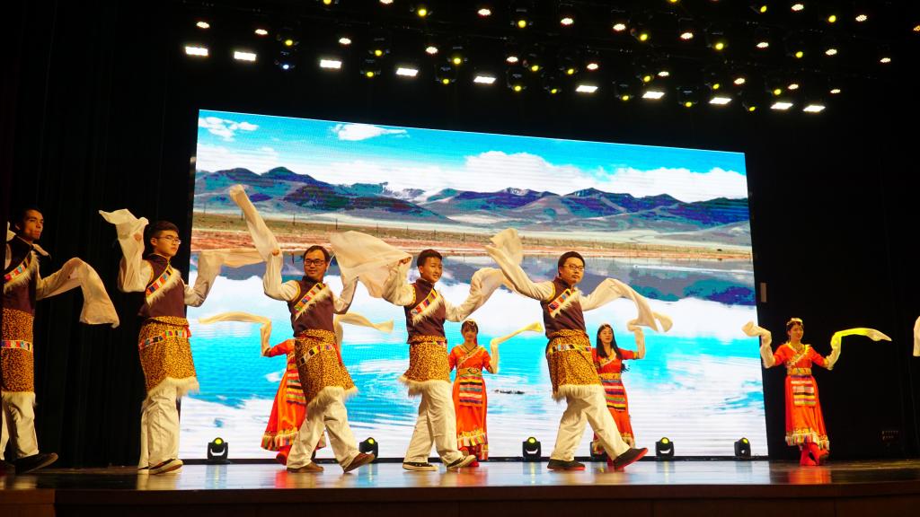《锅庄》作为少数民族的舞蹈节目,不可谓不精彩。身着少数民族服装的同学们在伴着动人的藏族音乐翩翩起舞,让我们充分感受到了少数民族的文化魅力。各个民族永远都是团结友爱的一家人!