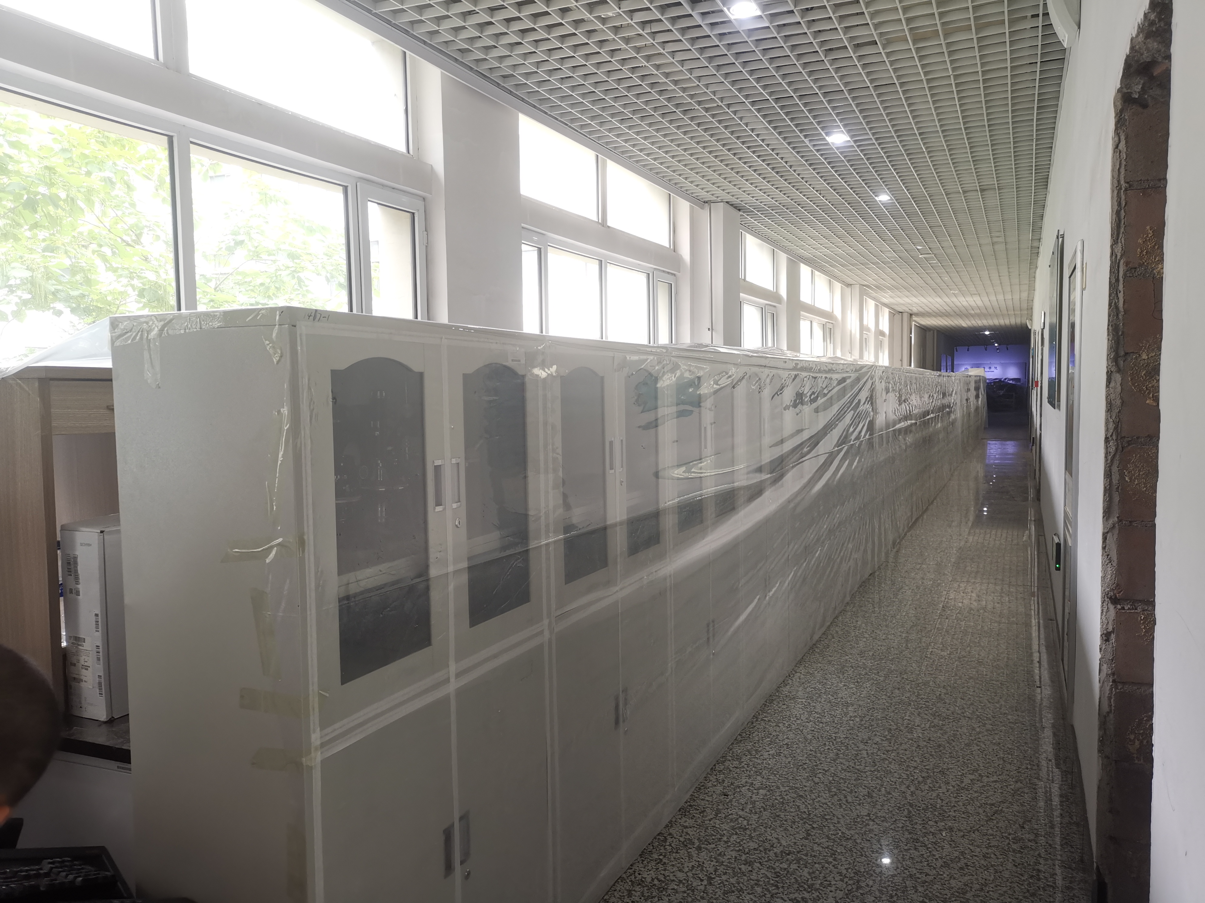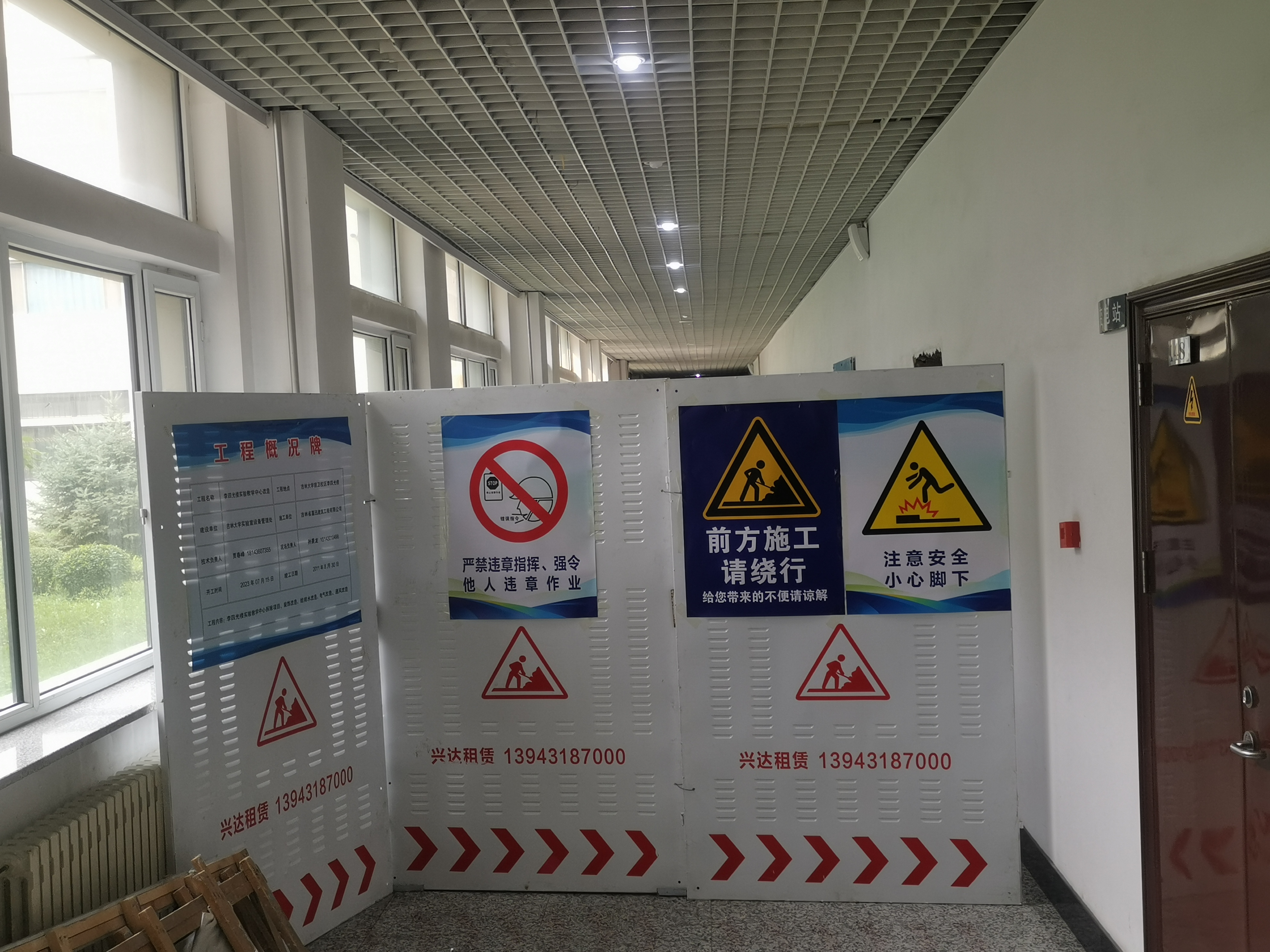 虽然施工安排假期,但李四光实验楼内化学实验教学中心、高分子重点实验室仍然有部分教师、研究生开展工作。中心与施工单位共同做好楼内单位协调,做好师生安全告知与防护,同时,要求施工单位严把质量关的前提下,严抓安全文明施工。