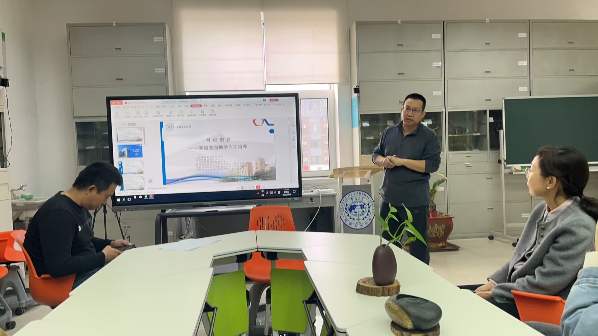 交流活动围绕“科创融合——实验室与地学人才培养”这一主题,李文庆副主任、杨韩涛副主任分别做主题发言。李文庆立足科研实验室,从如何让科研实验室更好的服务于教学这个问题出发,介绍了公司的科研实验室都有什么,在做什么,交流现阶段和教学结合的点在哪里以及努力服务教学的方向。杨韩涛做“大创、小创视域下的实验教学创新”汇报,从迎接本科公司产品审核评估考察开展的双创实践教育科技作品展出发,介绍了公司教学实验室、地质+双创示范基地开展创新创业实践活动的经验及取得的成果,讨论了教学实验室开展地质人才创新培养的路径方法。