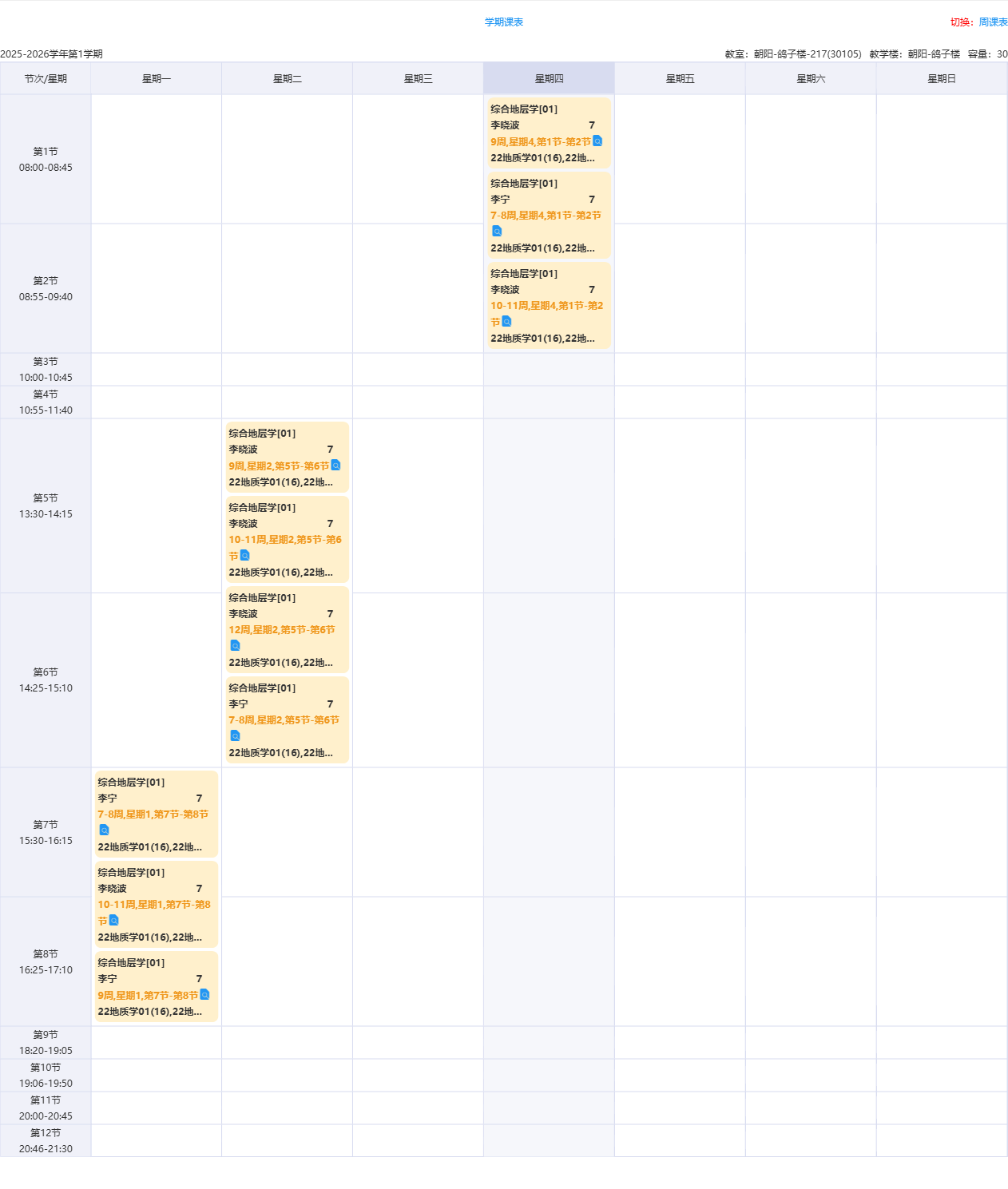 2025-2026-1学期课表