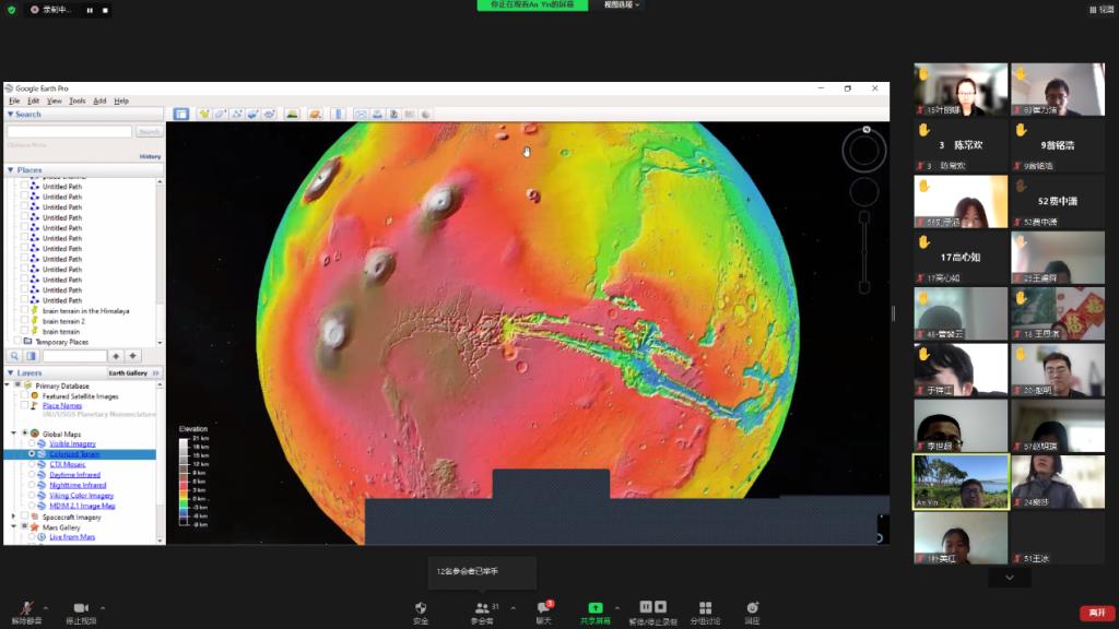 在共计8周48学时的课程学习中,师生们共同克服时间与空间的约束,圆满的完成了本次线上课程。An Yin教授围绕太阳系八大行星及其卫星的物理结构、大气、磁场、地表构造等问题进行了深入浅出的讲解。同时,An Yin教授也就行星地质学研究的热点问题为同学们布置了3次课后作业和1次课程项目,有效地激发了同学们投身于行星地质学研究的兴趣。