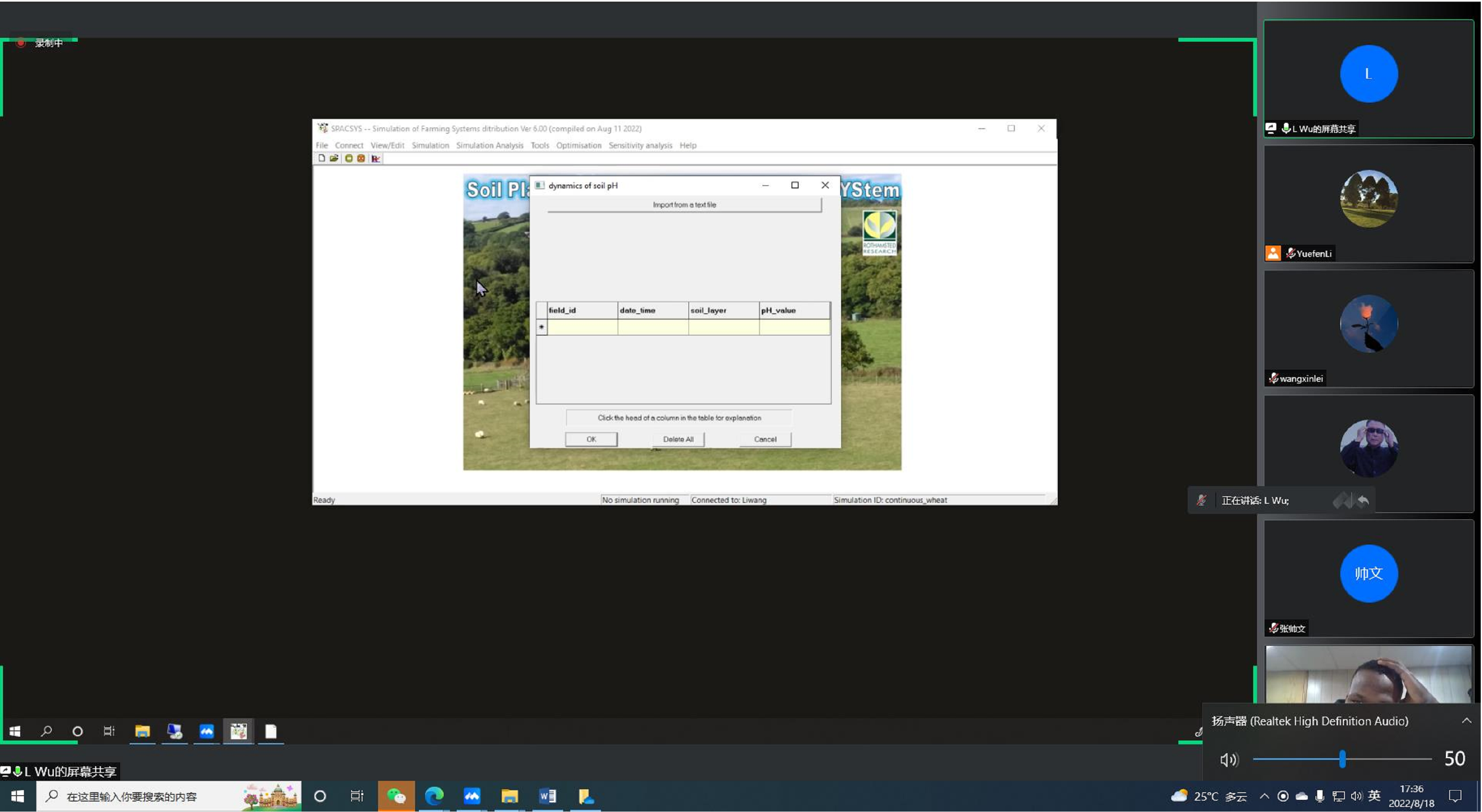 在本次暑期课程的十次课程正值英国罕见的高温天气,吴连海研究员不仅克服了难耐的酷暑,也克服了英国与中国的时间差距,清晨便为公司的老师和员工们讲授精心准备的课程,详细介绍了农业土地可持续利用的基础知识和前沿进展,并且展示了SPSCSYS的使用步骤。师生们充分利用假期时间参与学习,每天及时上线听课并积极参与讨论。课程的实施充分达到了预期效果,师生们不仅学到了前沿的专业知识,也拓展了自身的视野,培养了自身的实践应用能力,树立未来科研及职业发展的新目标。
