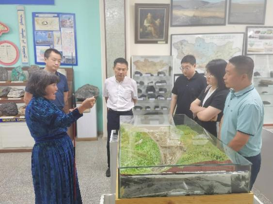 在访问蒙古科技大学期间,代表团与该校地质与采矿工程公司经理哈瓦尔·博洛特(Khavalbolot Khavalbolotv)、地质与水文地质系主任恩赫巴亚尔·丹达尔(Enkhbayar Dandar)、地学中心主任巴塔尔·辛格勒(Baatar Munkhtsengel)和地质与水文地质系教授巴特贺希格·巴亚拉(Batkhishig Bayaraa)等人就中蒙国际地学野外实践教学基地的建设和深化人才培养合作等方面进行深入交流。双方分别介绍了团队建设、科研合作和人才培养的基本情况,就团队互访、员工交流、合作科研等领域的可行性方案进行进一步探讨。双方一致认为,从2018年合作开展海外实践活动以来,员工们的综合素质和国际化水平得到有效提高。海外实践教学激发了员工的学习兴趣,为从事矿产勘查工作奠定了良好基础。未来双方应进一步落实校际合作协议中的各类务实合作,加强交流互访,推动学科发展。